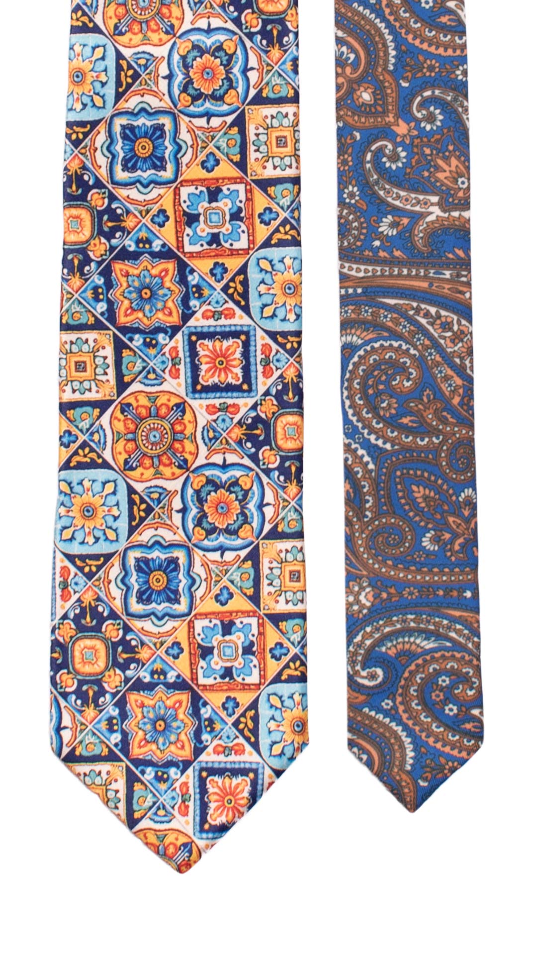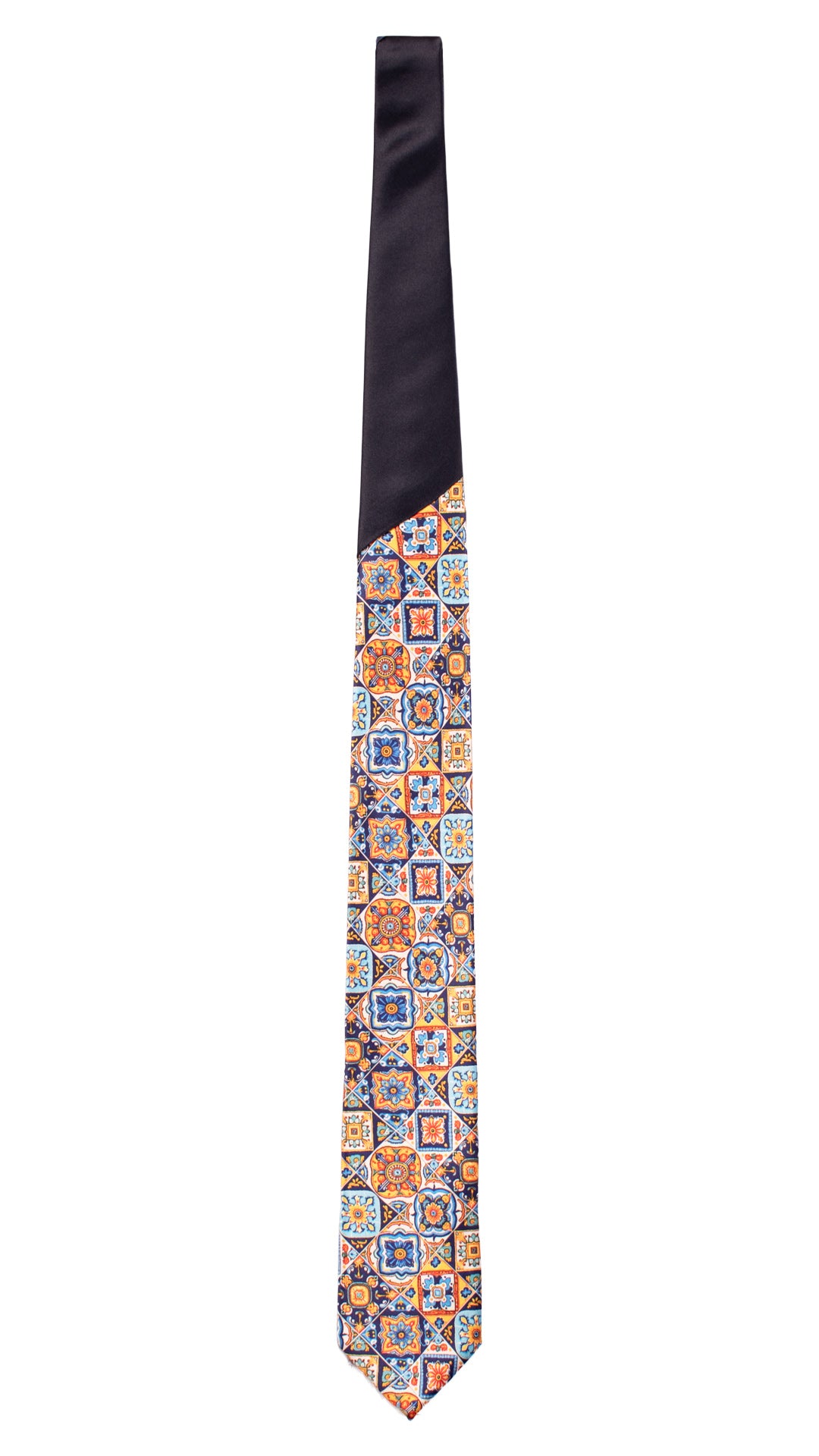 Man Sicilian Majolica Multicolor Satin Silk Tie Deep Blue Contrast Knot N3228