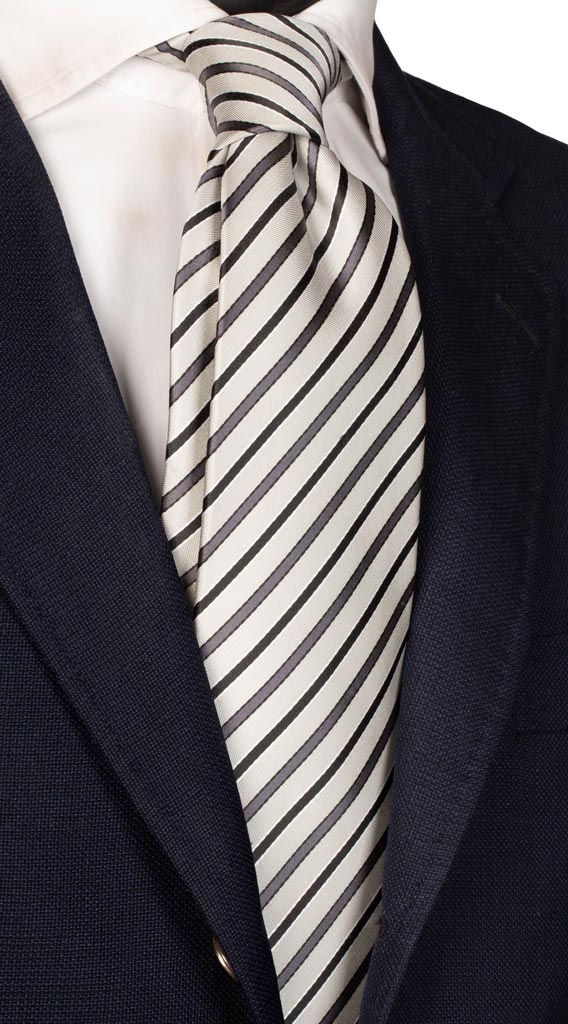 Man Regimental Ceremony Silk Tie Grey White Black Pattern CY1086