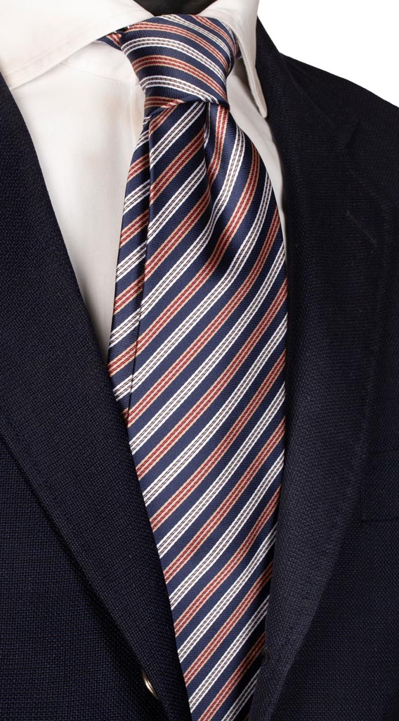 Man Regimental Silk Tie Blue Beige White Red Stripes 1041