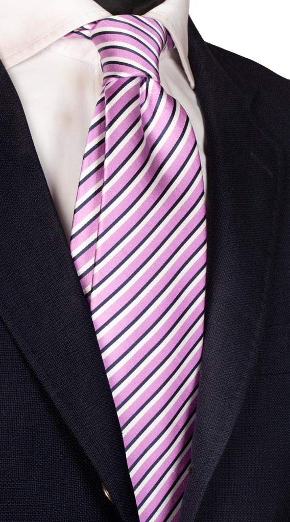Man Regimental Silk Tie Violet Blue White Stripes 900