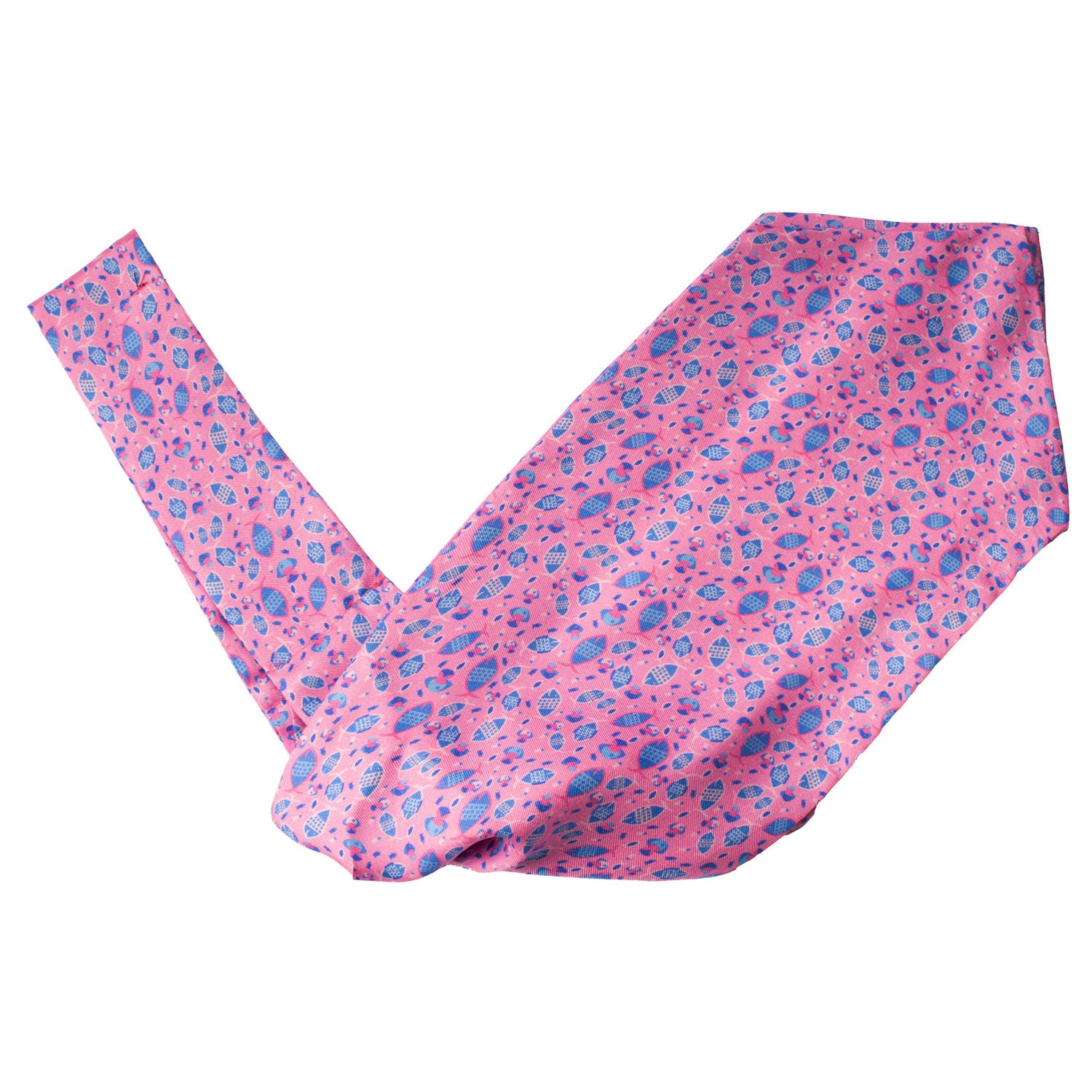 Man Pink Printed Silk Ascot Light Blue Azure Pattern with Animals AS141