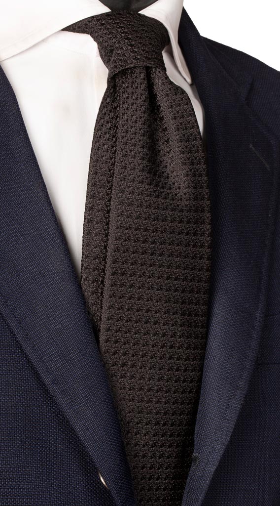 Man Black Brushed Ceremony Silk Tie Tone on Tone Pattern CY6476