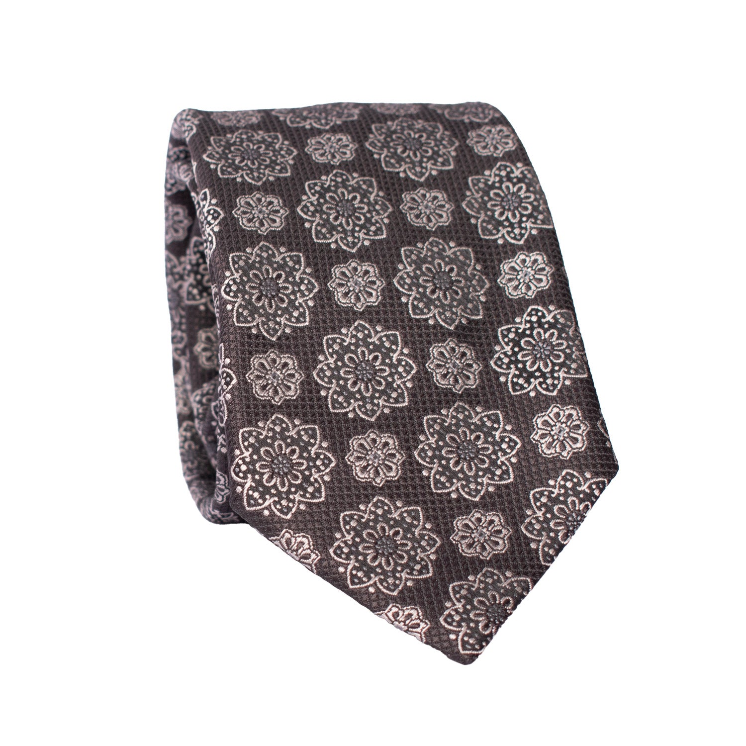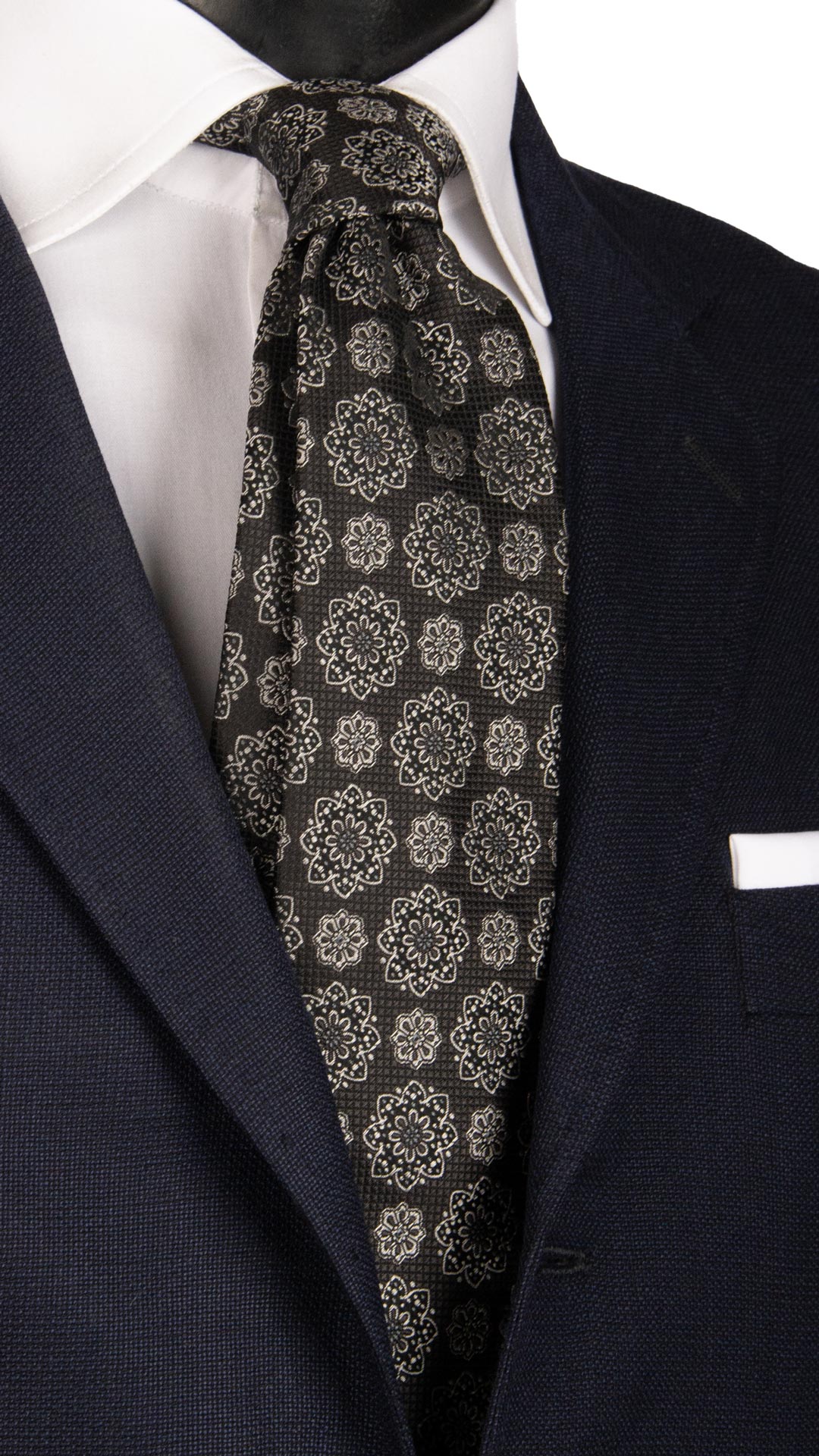 Cravatta da Cerimonia di Seta Nera a Medaglioni Grigi CY6667