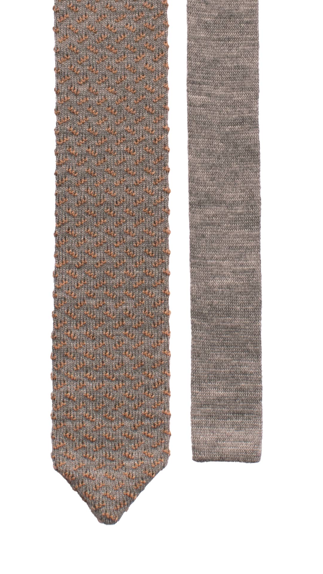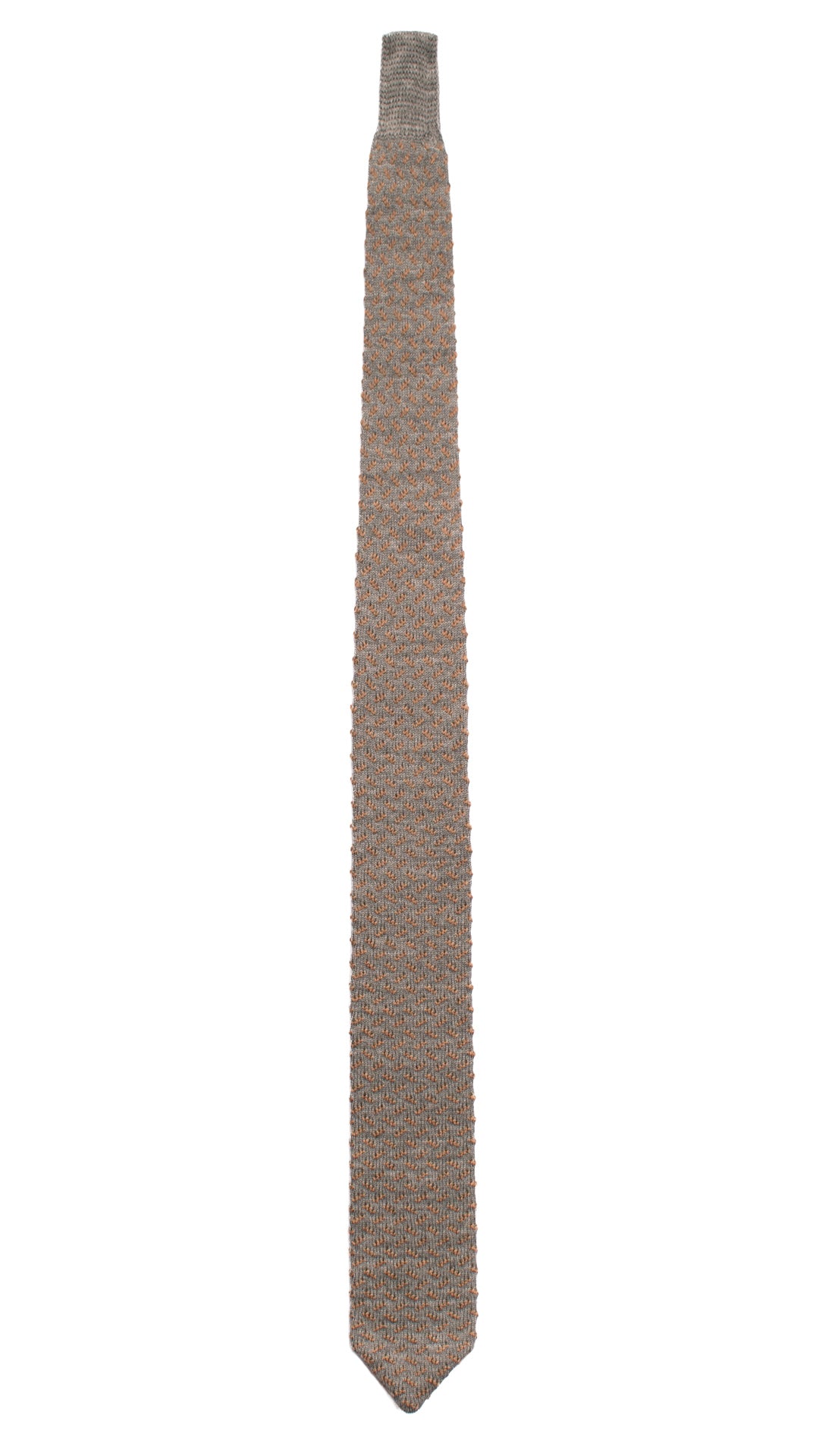 Cravatta Tricot in Maglia di Lana Grigia Fantasia Marrone TRI592