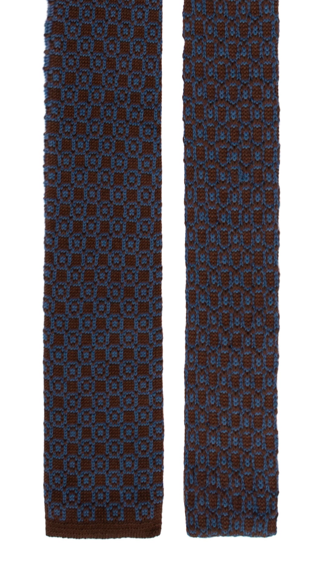 Cravatta Tricot in Maglia di Lana Marrone Fantasia Bluette TRI496