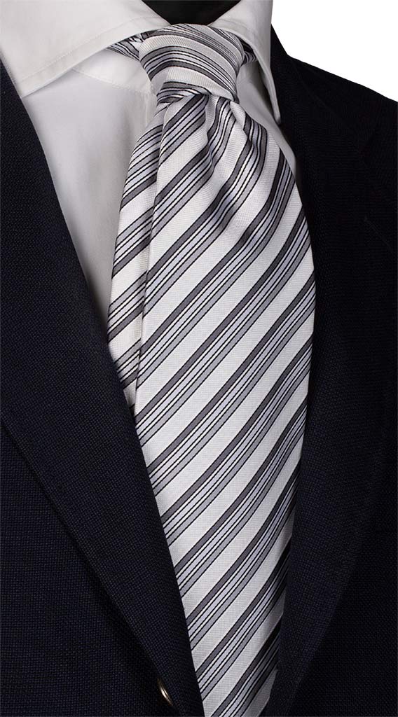 Cravatta da Cerimonia di Seta Nera Grigia Argento CY6621