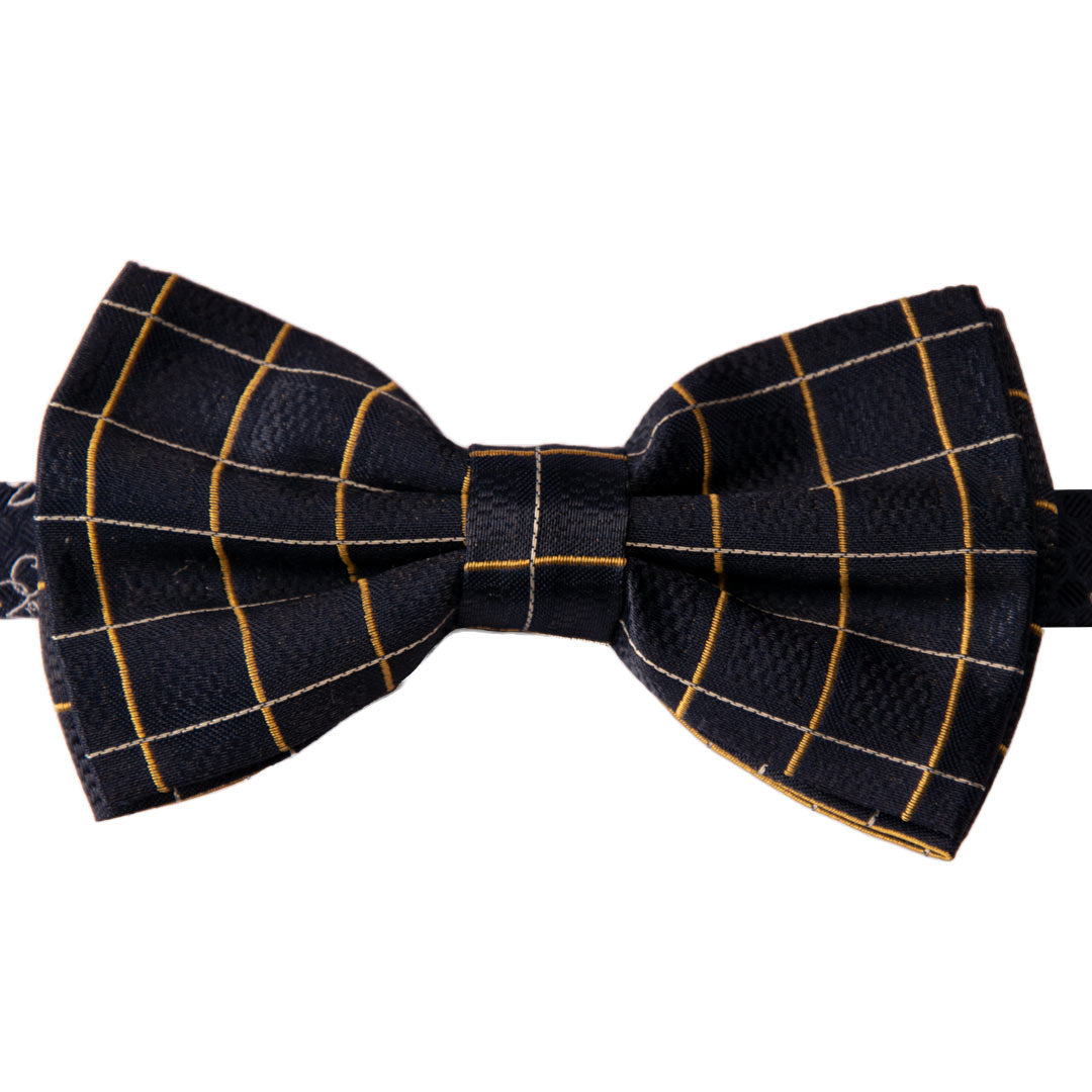 Papillon Annodato di Seta a Quadri Blu con Righe Bianche Gialle PAP1035