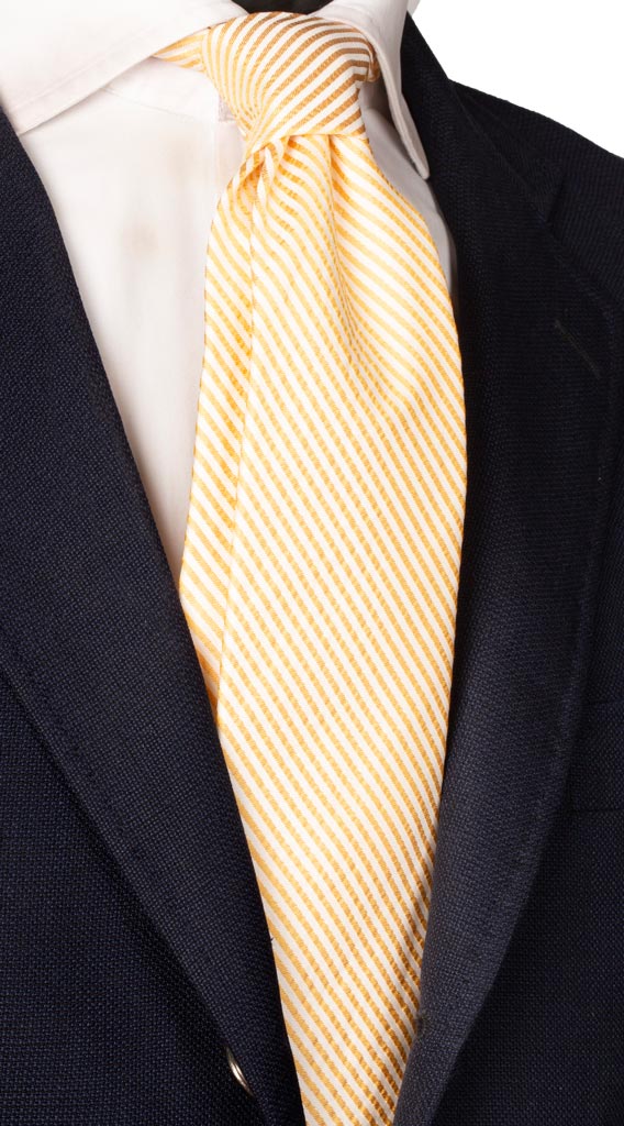 Man Yellow Cashmere Tie Tone on Tone Stripes L1122