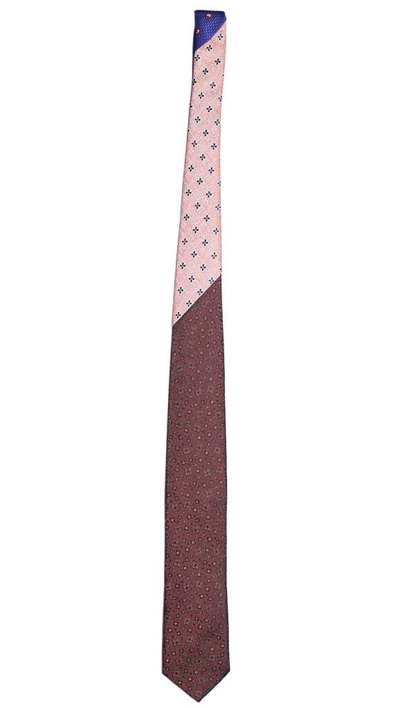 Man Silk Tie Gray Beige Deep Blue Pattern Deep Blue Contrast Knot Tone on Tone Pattern N1851