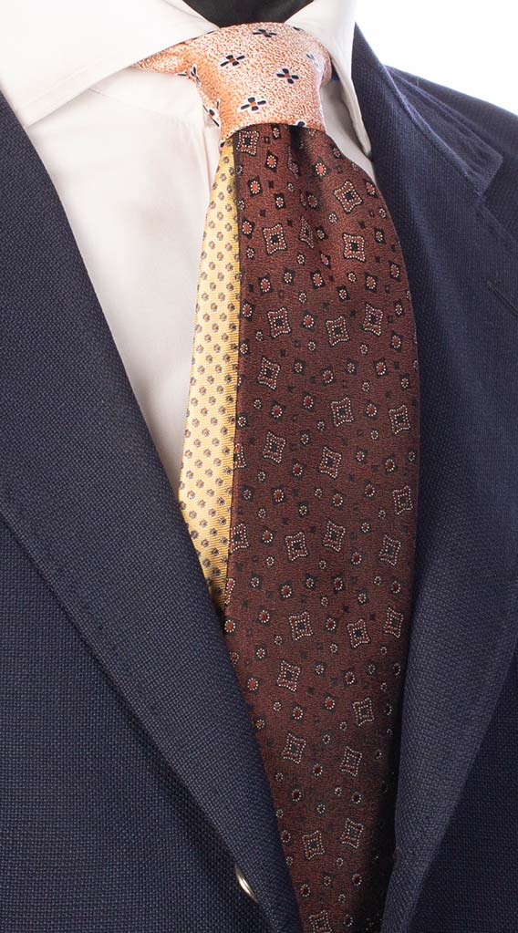 Man Light Brown Tie Blue Navy Brown White Checked Contrast Knot N1684