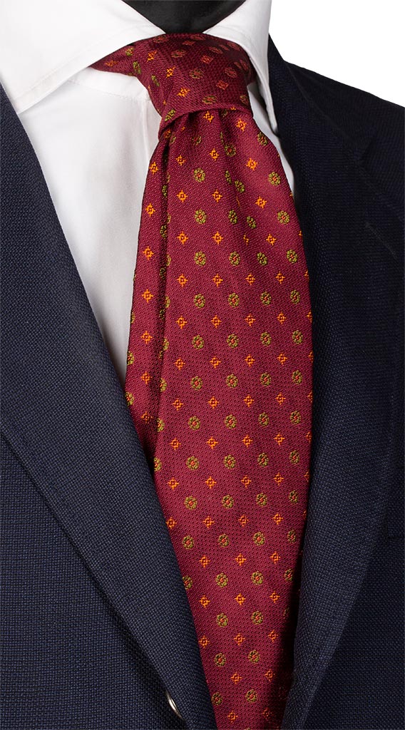 Man Bordeaux Silk Tie Blue Green Orange Pattern 6055