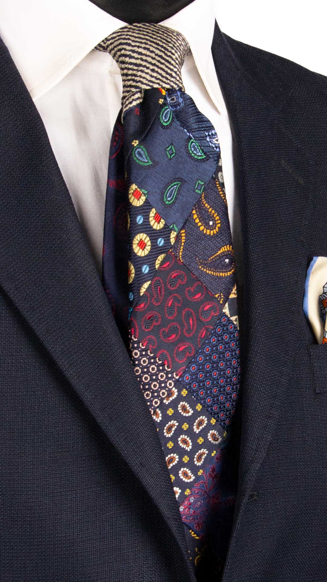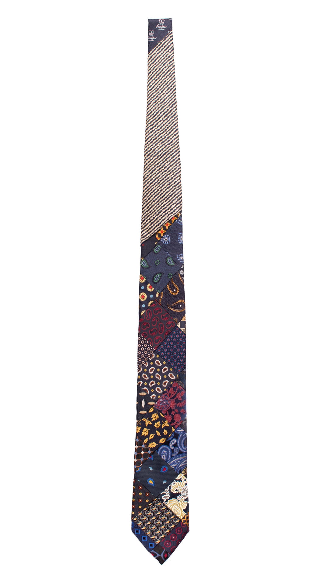 Man Blue Mosaic Patchwork Silk Tie Green White Pattern PM997