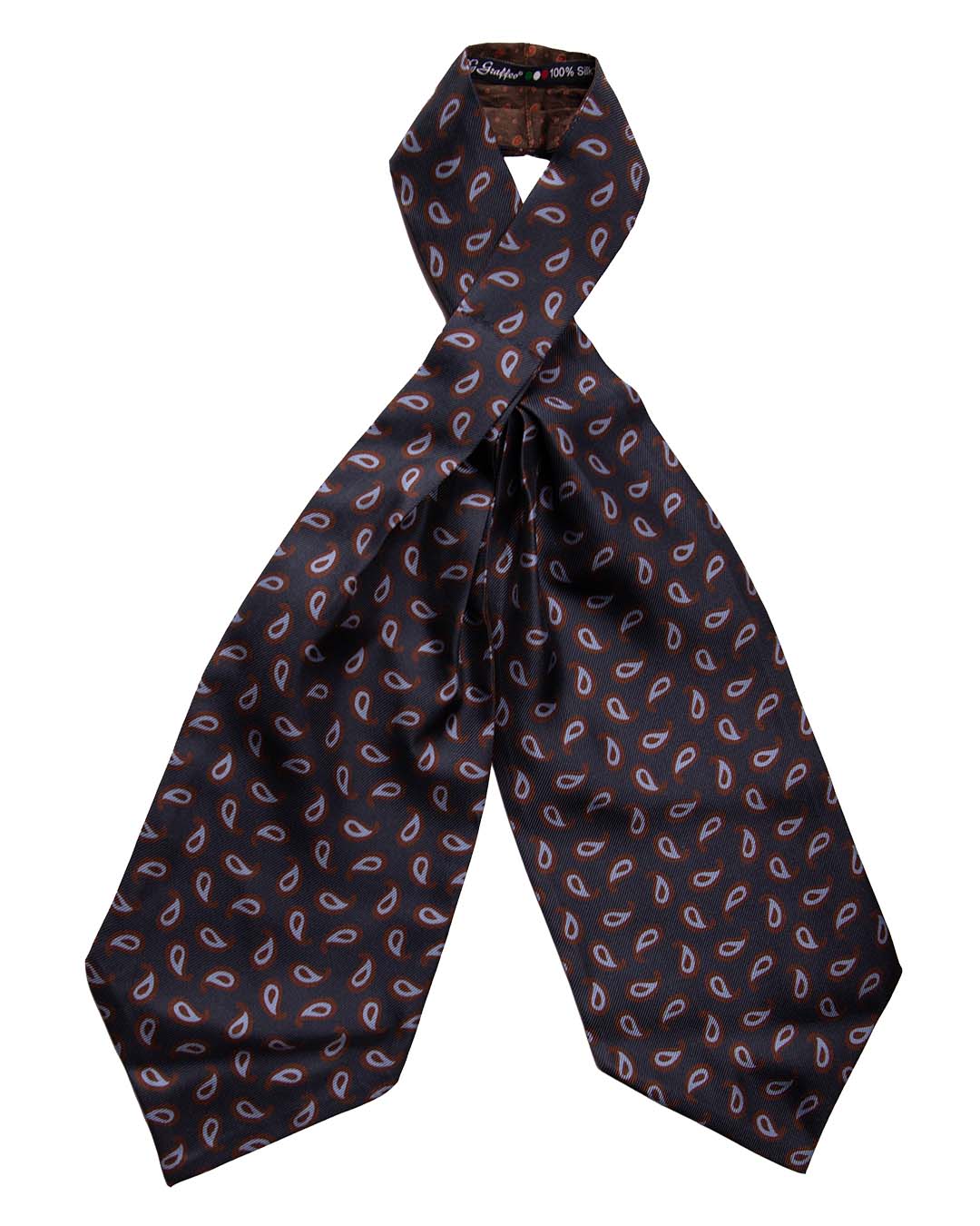 Man Blue Printed Silk Ascot Blue Brown Paisley AS88
