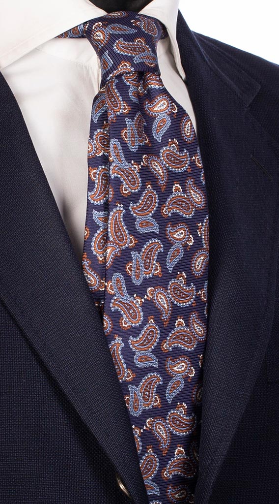 Man Blue Printed Silk Tie Brown White Blue Avio Paisley 1311