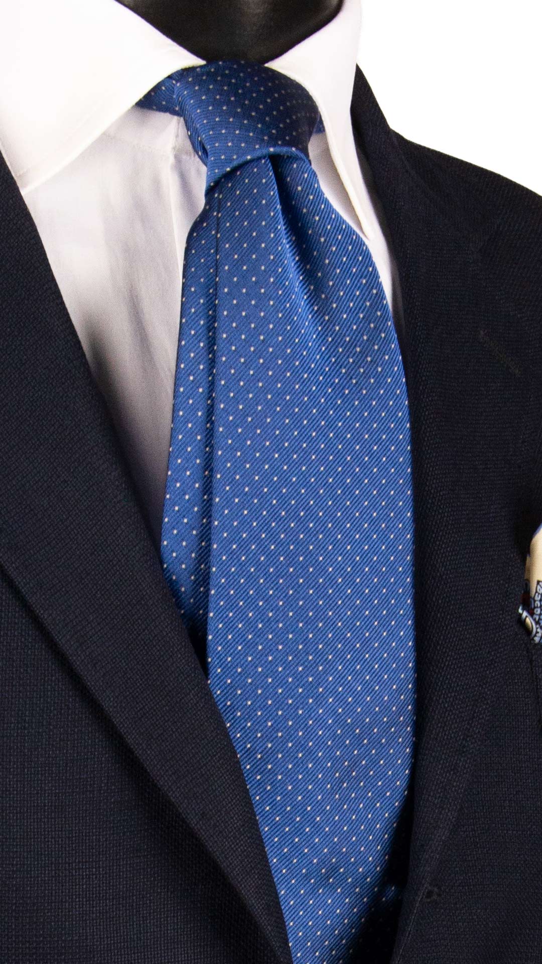 Man Blue Wool Silk Tie White Spiked Point L1022