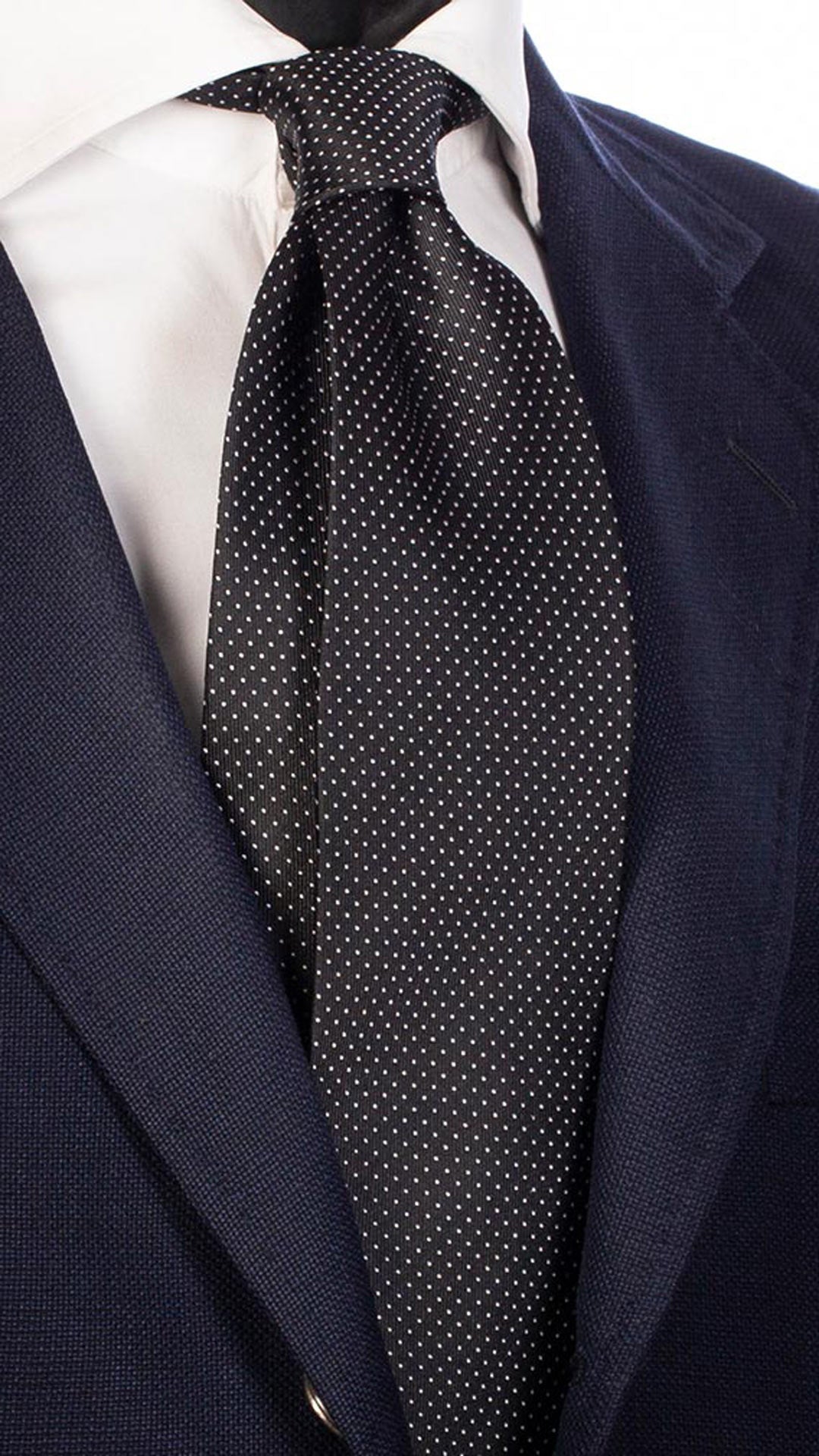 Man Black Ceremony Silk Tie White Spiked Point CY4703