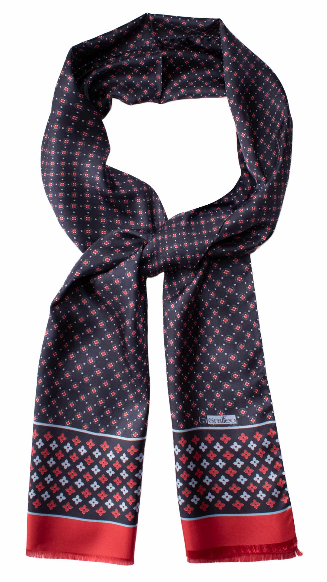 Blue Silk Scarf Red Azure Pattern SF56