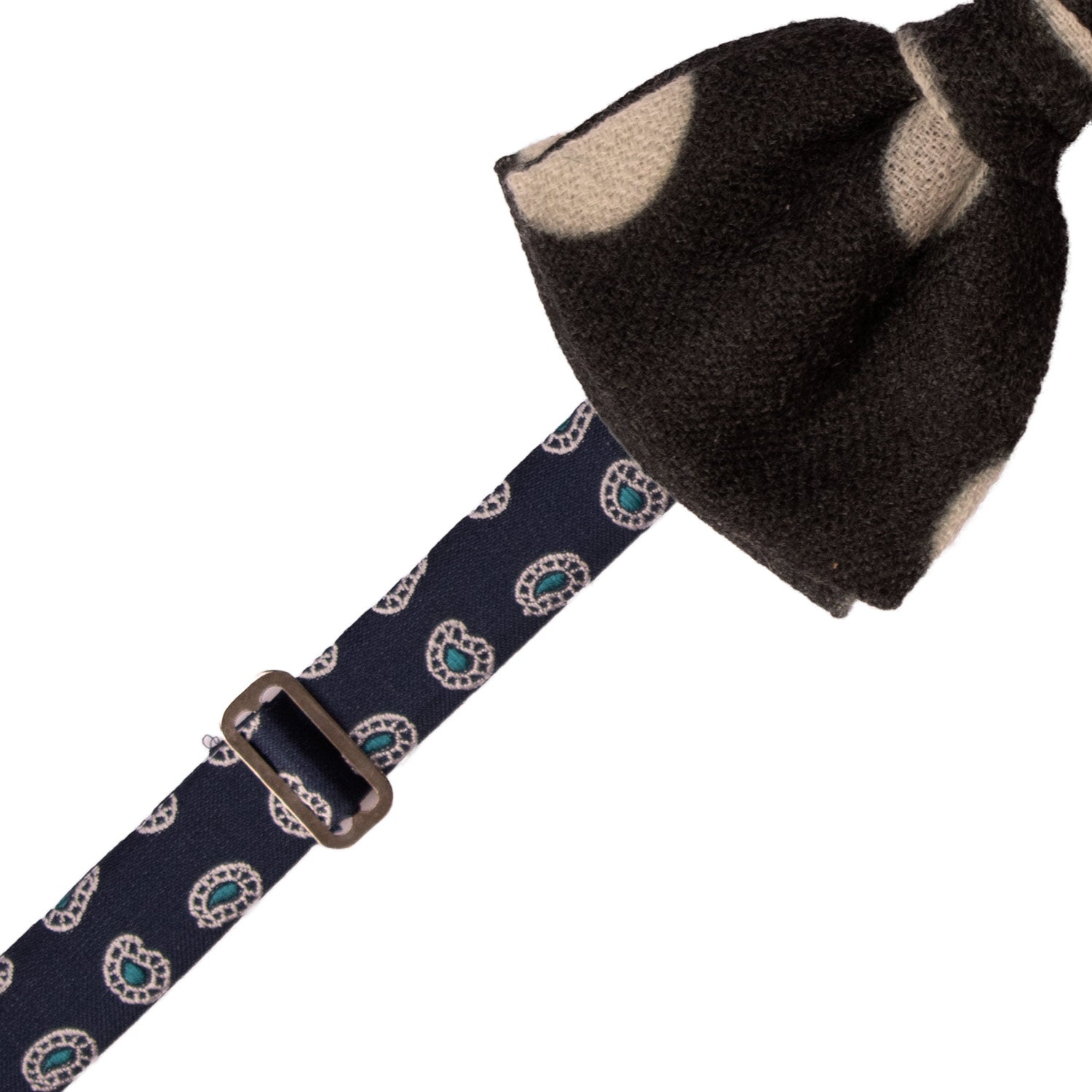 Man Dark Green Vintage Cashmere Pre-Tied Bow Tie White Pattern PAP1226