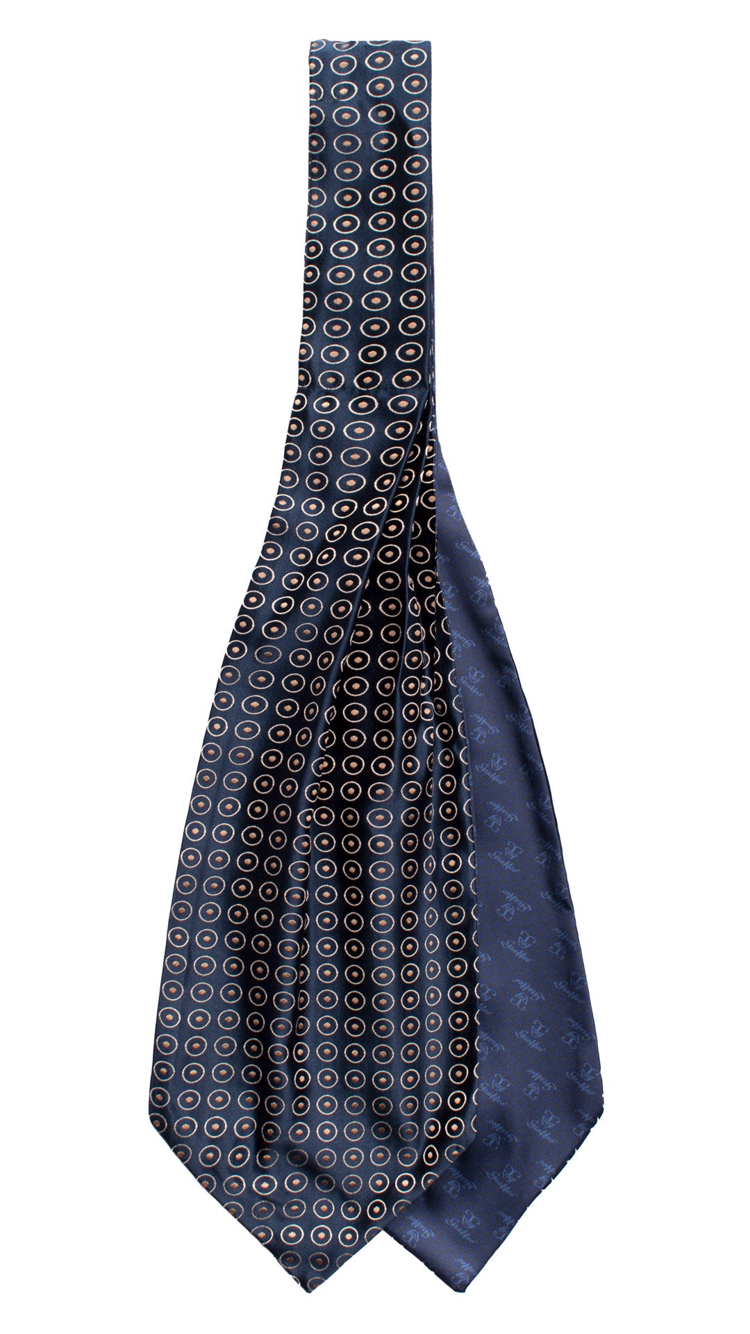 Man Blue Navy Printed Silk Ascot Azure White AS116