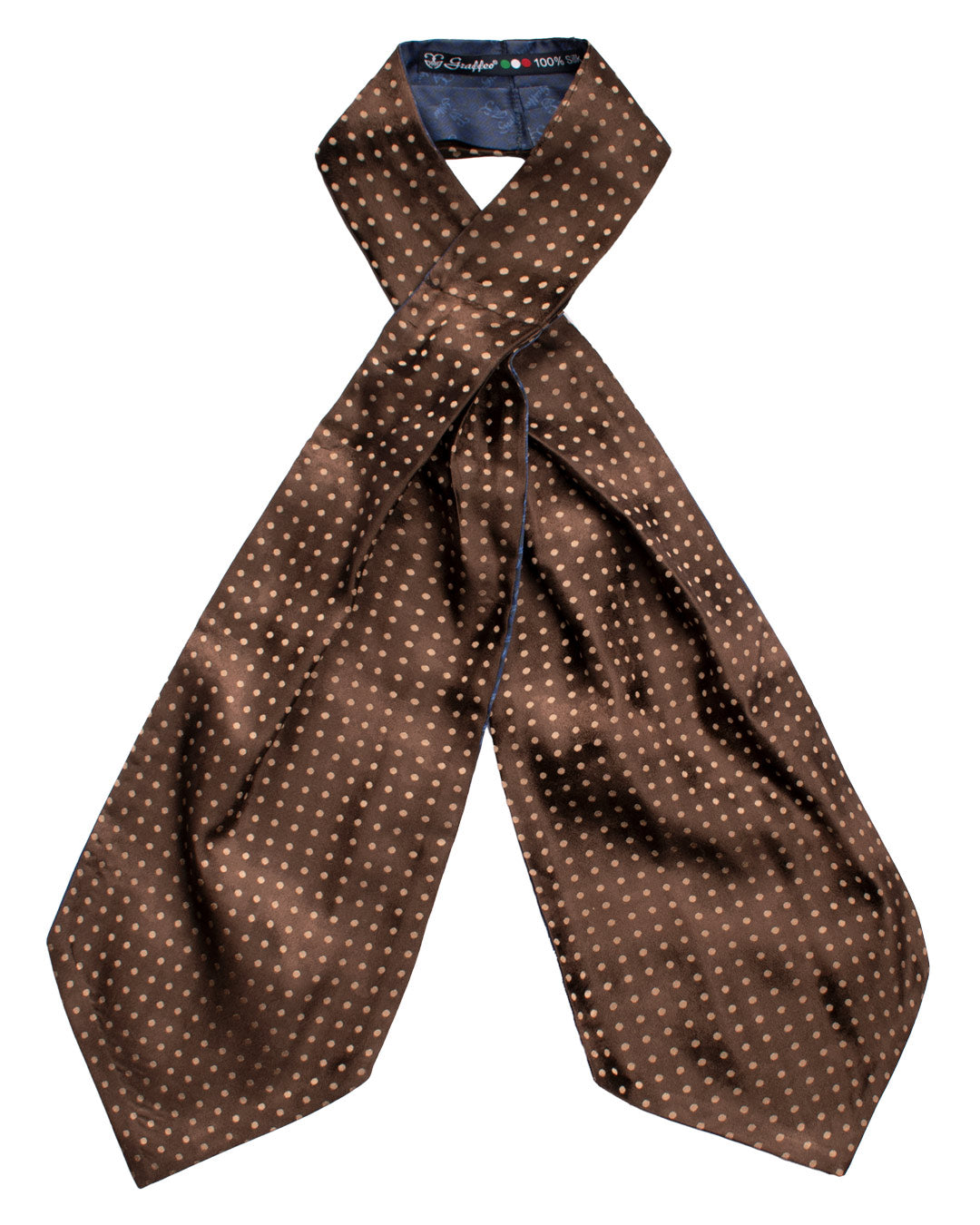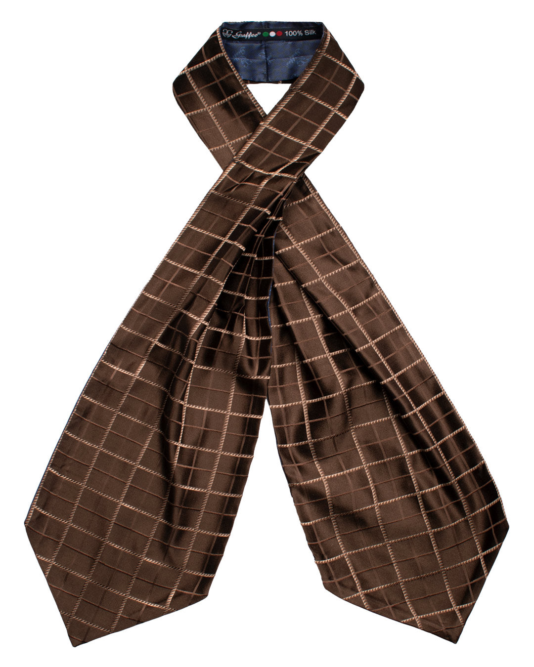 Man Blue Printed Silk Ascot Blue Brown Paisley AS88