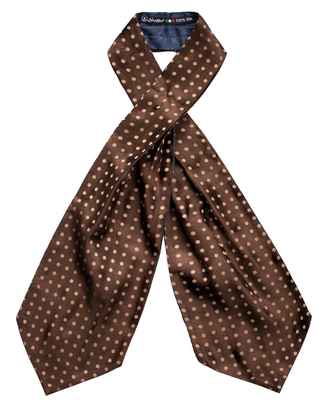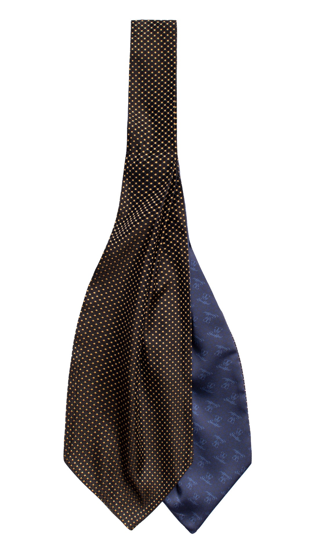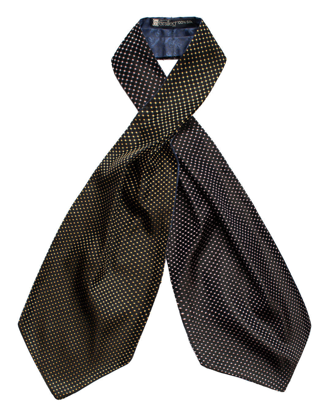 Man Black Printed Silk Ascot Azure White Polka Dots AS51