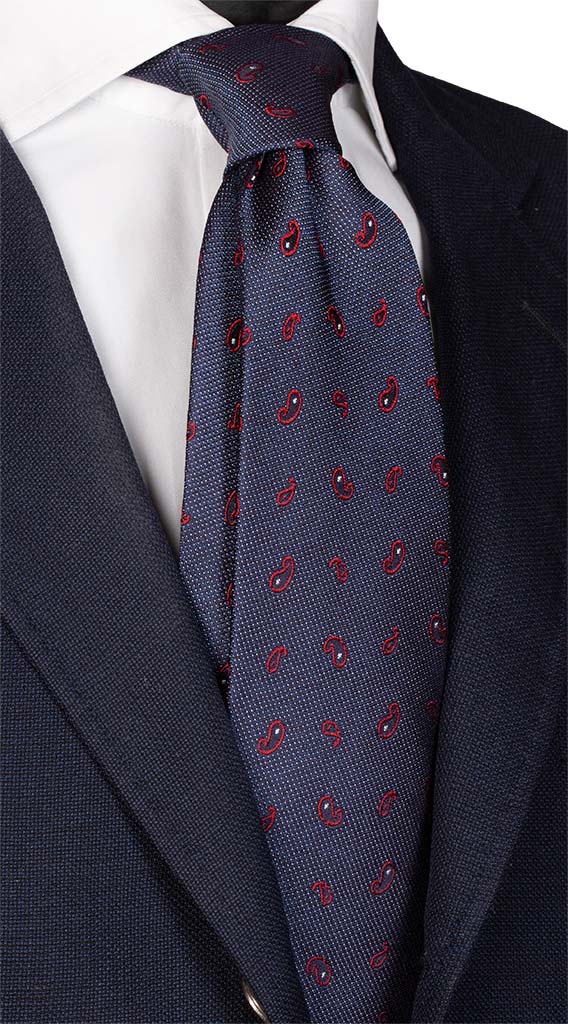 Man Wool Silk Blu Aviation Tie Beige Pattern L369