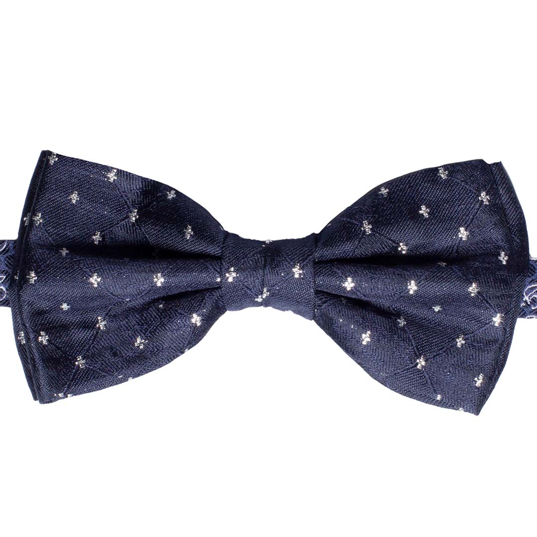 Man Blue Ceremony Silk Pre-Tied Bow Tie Lurex Silver Grey Pattern PYPap598