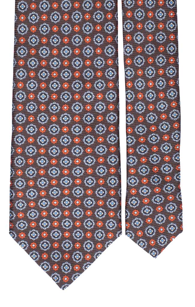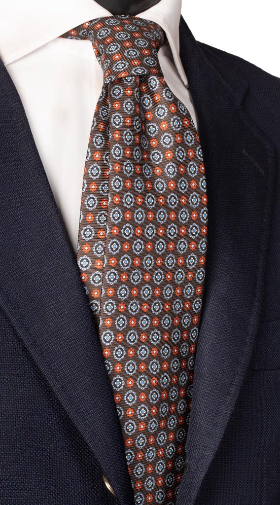 Man Grey Printed Silk Tie Azure Rust Pattern 6364