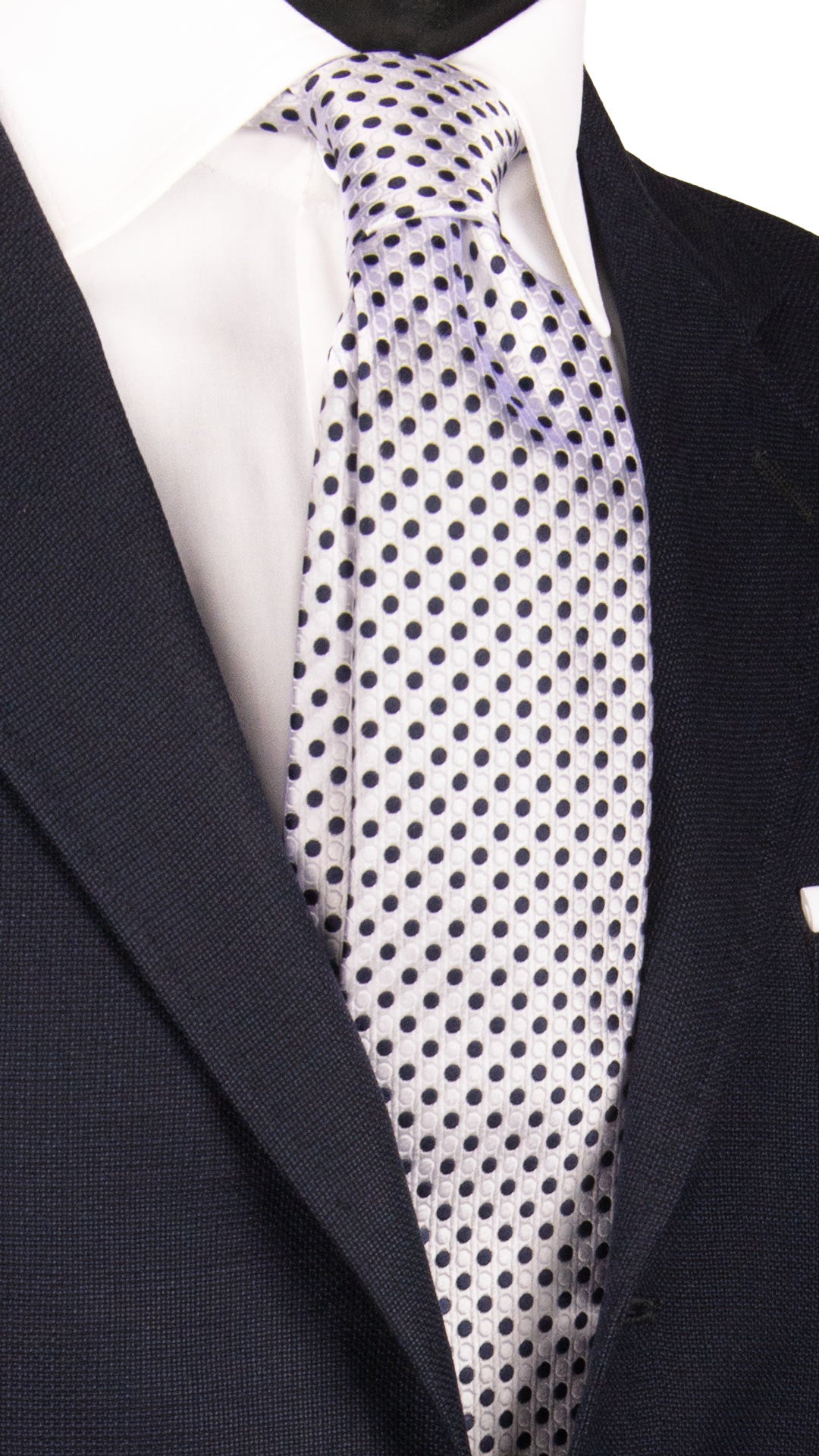 Man Pearl White Ceremony Silk Tie Blue Polka Dots CY7001