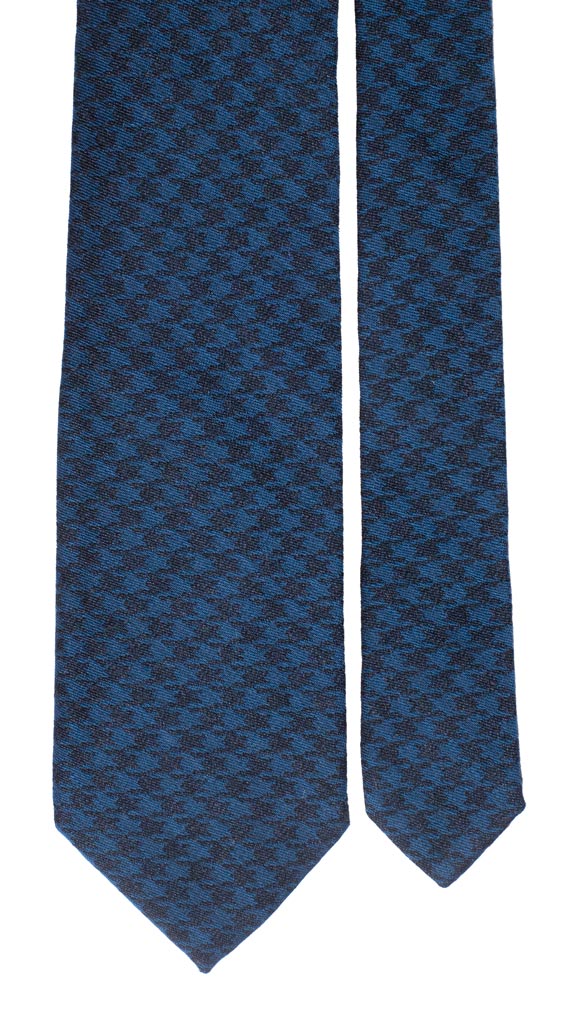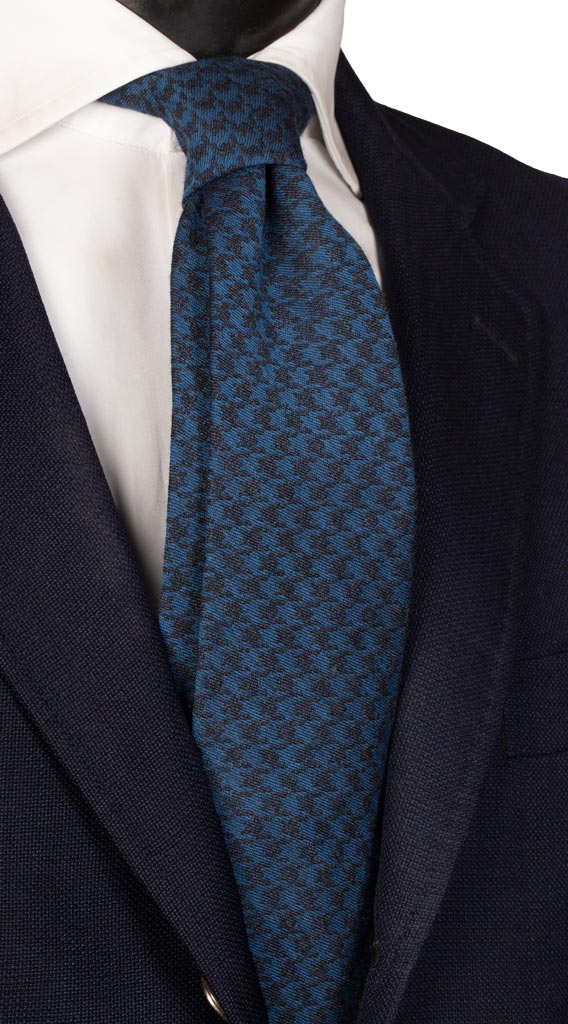 Man Wool Silk Tie Blue Deep Blue Pied de Poule L781