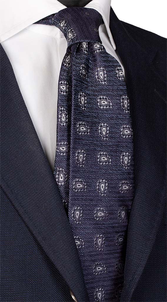 Man Dark Avion Jaspé Silk Tie Grey White Paisley J7