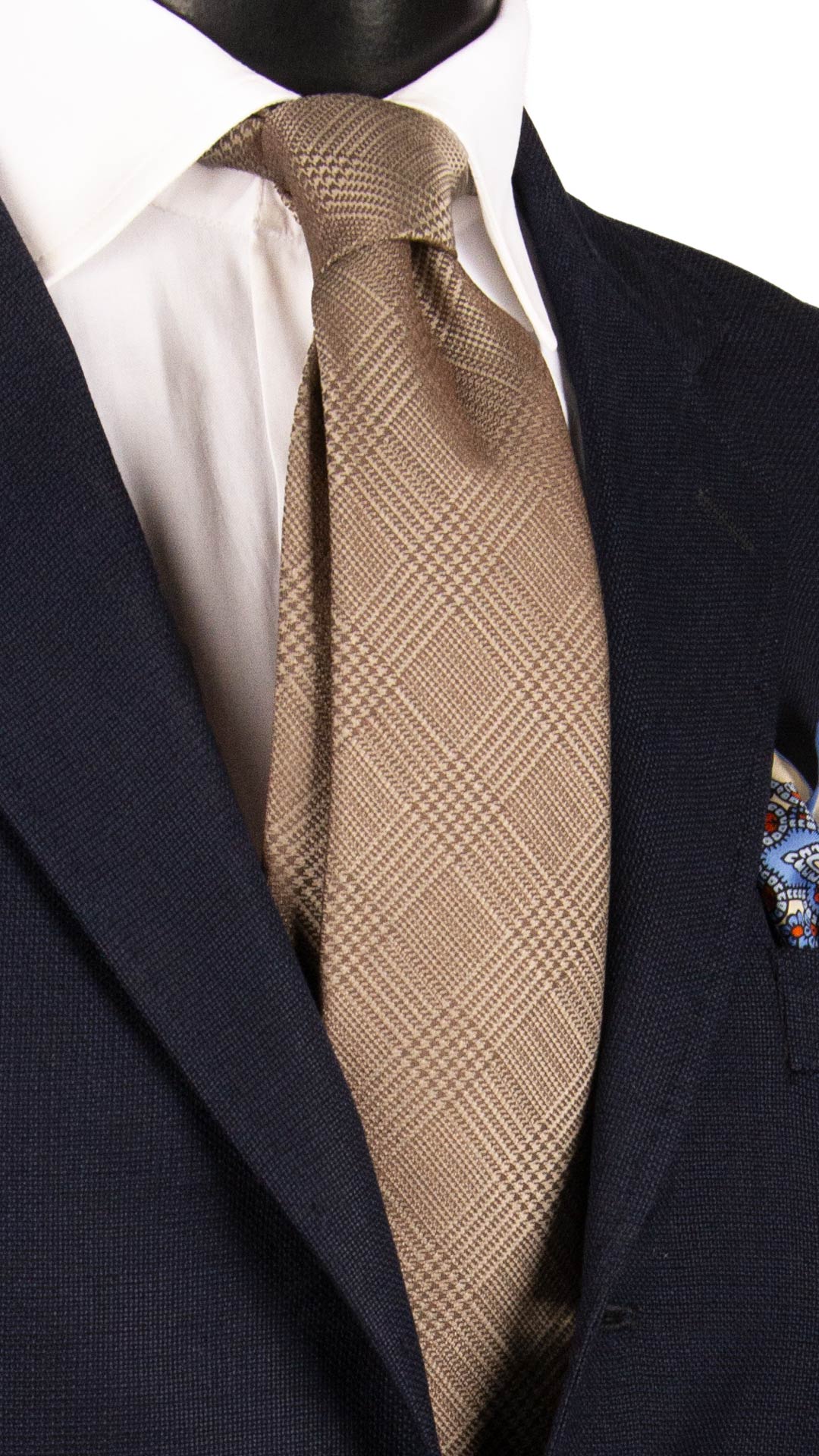 Man Beige Silk Tie Prince of Wales 7364