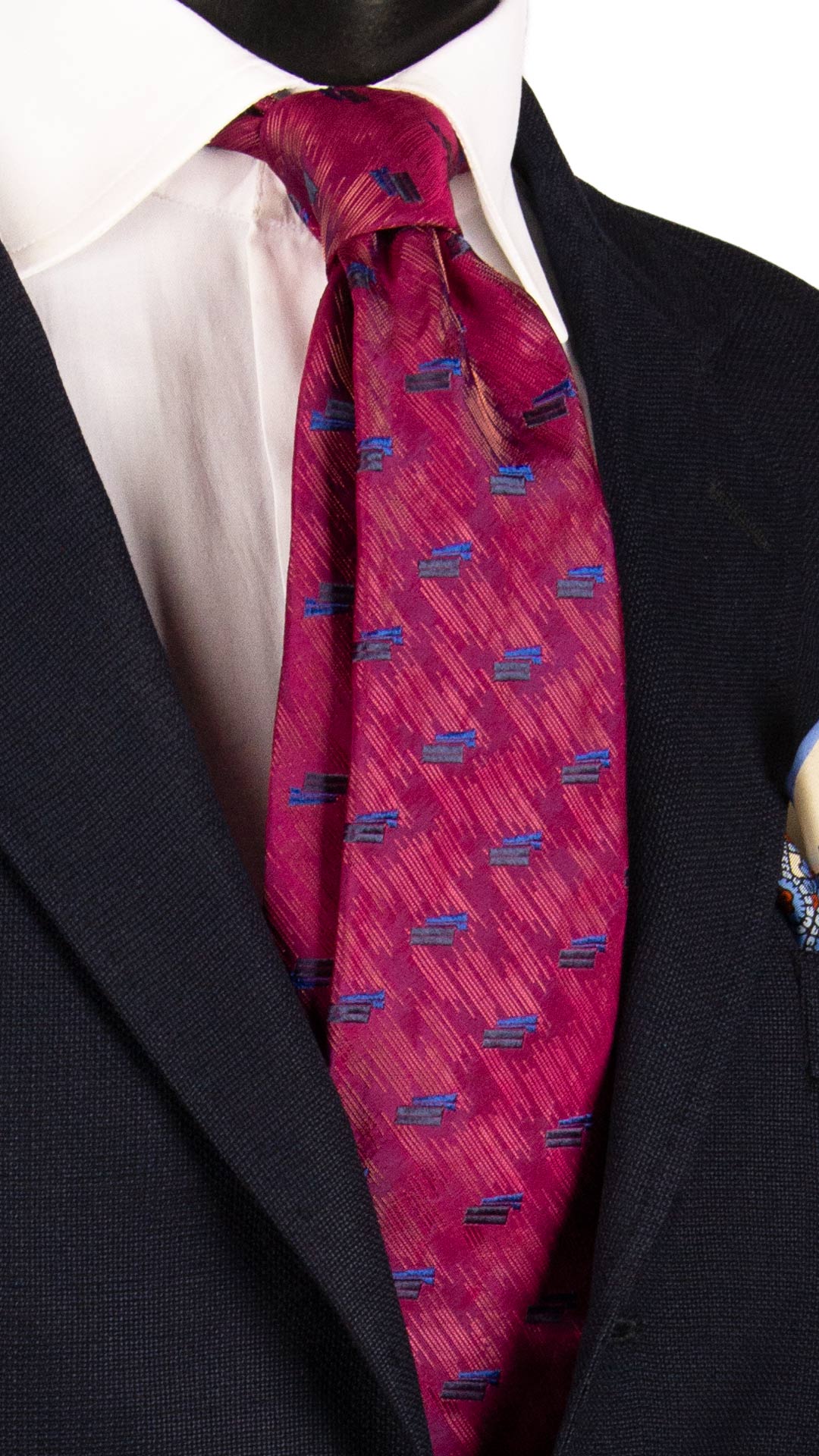Man Fuchsia Lurex Silk Tie Blue Deep Blue Pattern 7236