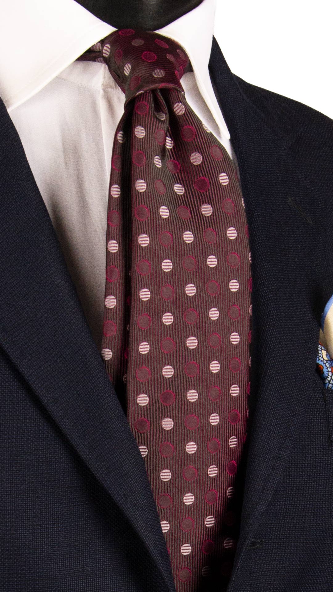 Man Fuchsia Knitted Silk Tie White Polka Dots TRI875