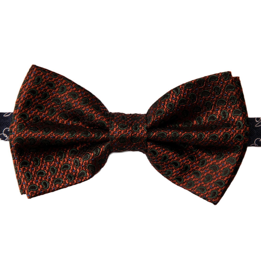 Man Rust Silk Pre-Tied Bow Tie Green Black Paisley Pap971