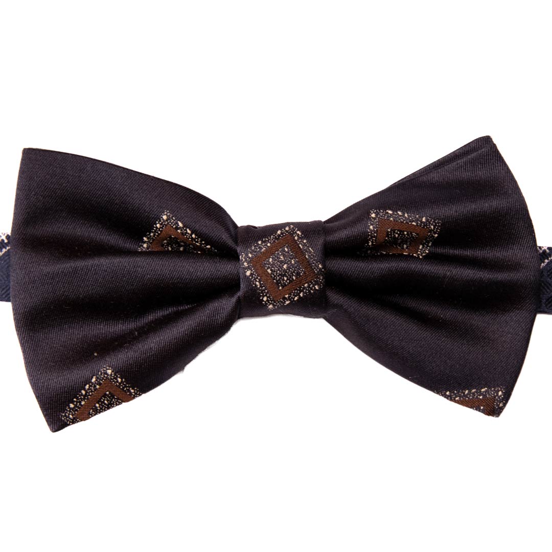 Man Blue Silk Pre-Tied Bow Tie Brown Grey Pattern Pap865