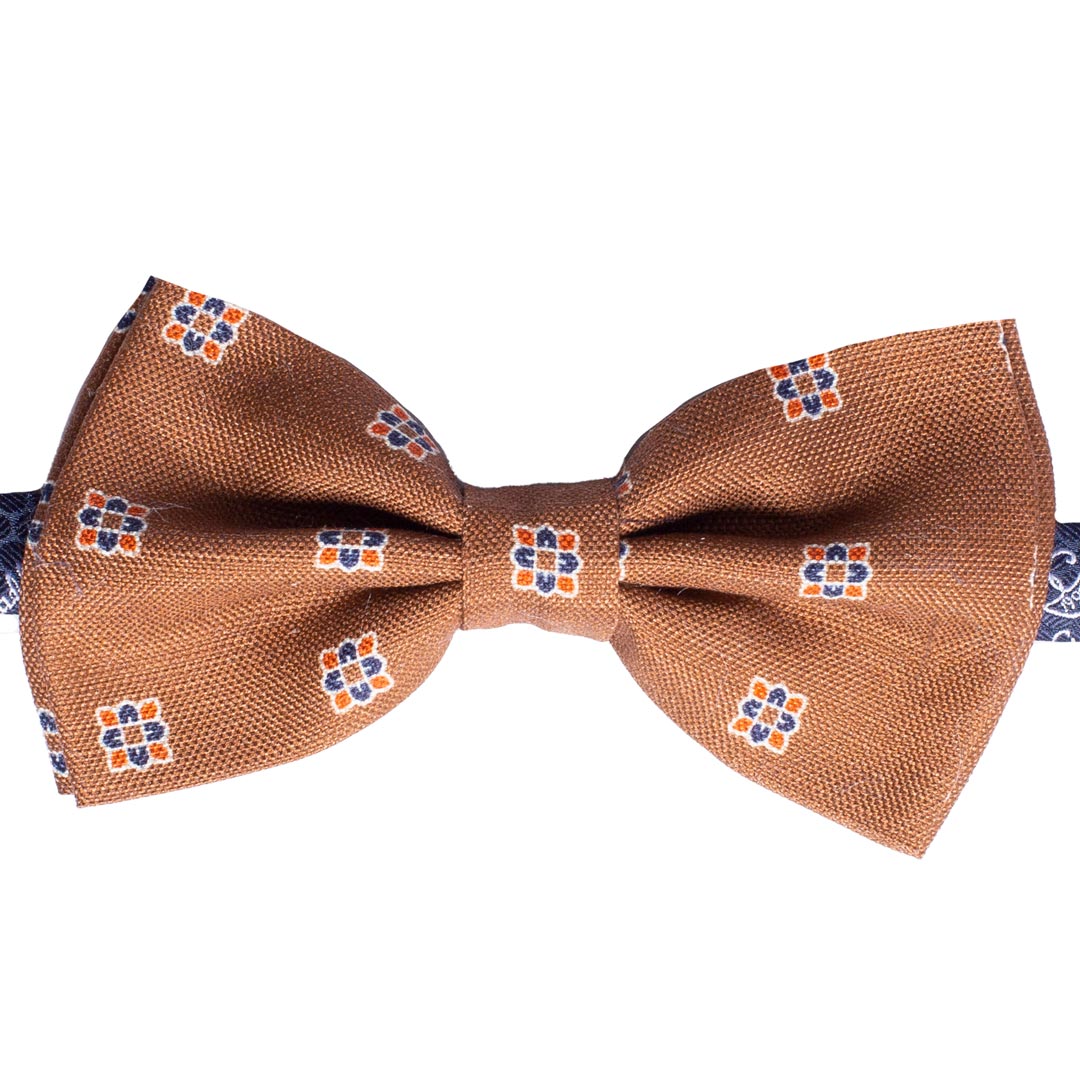 Man Orange Silk Pre-Tied Bow Tie Light Blue Pattern Pap880
