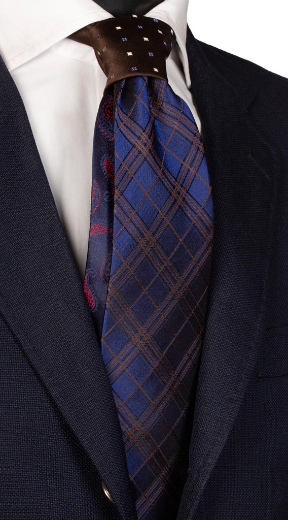 Man Violet Silk Tie Brown Checks Brown Contrast Knot Violet White Pattern N2431
