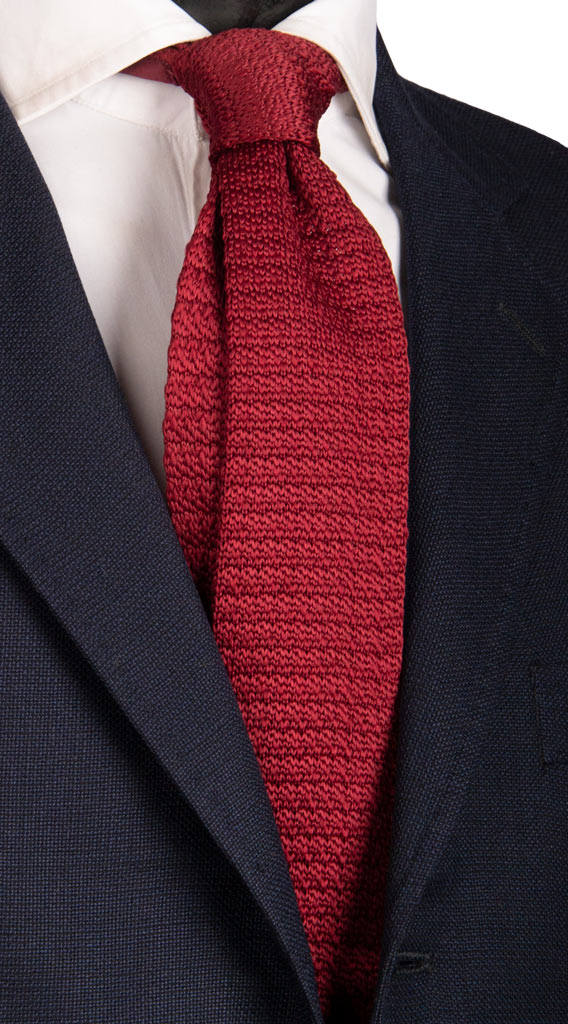 Man Solid Garnet Red Tricot Knitted Silk Tie TRI383
