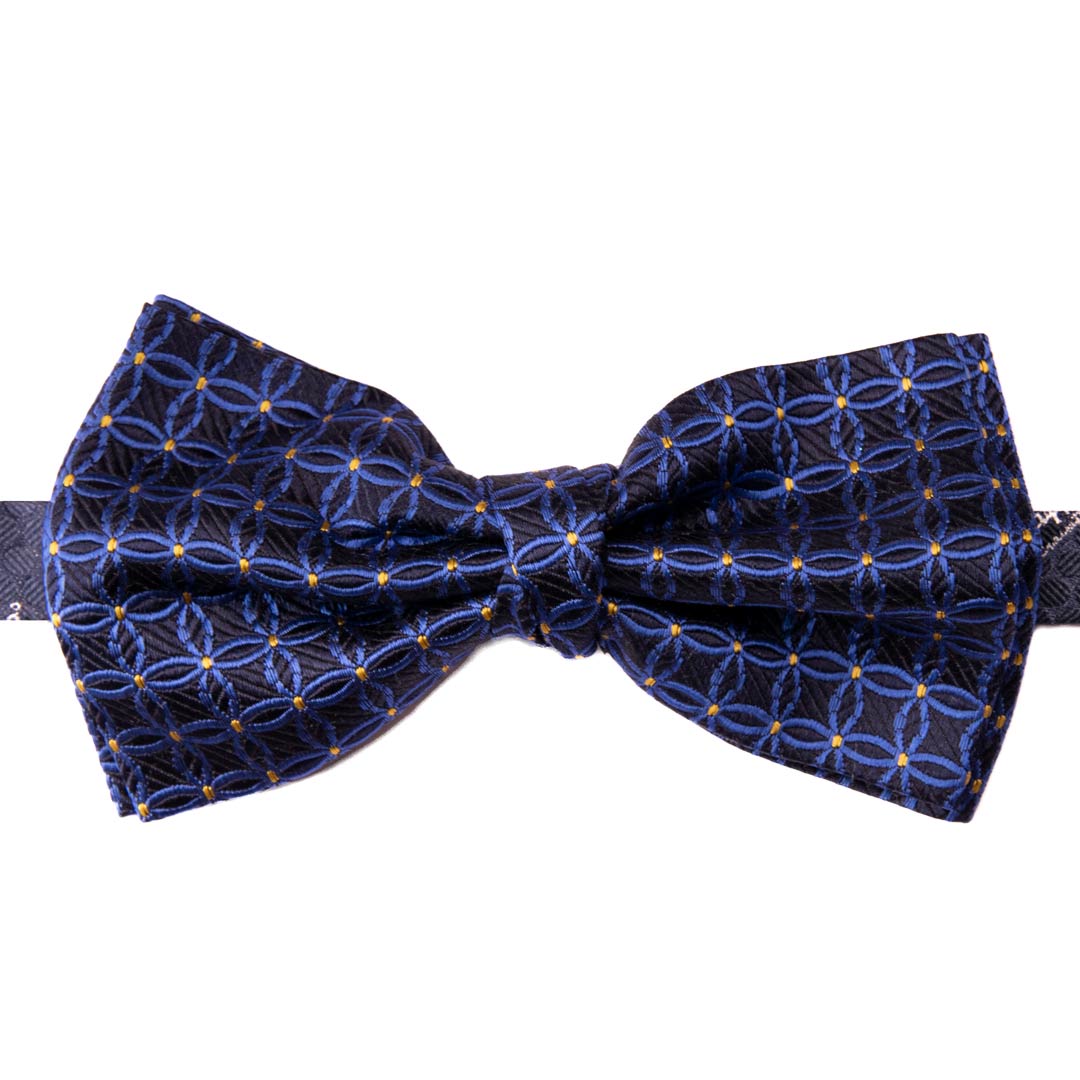 Man Blue Silk Pre-Tied Bow Tie Deep Blue Yellow Pattern Pap810