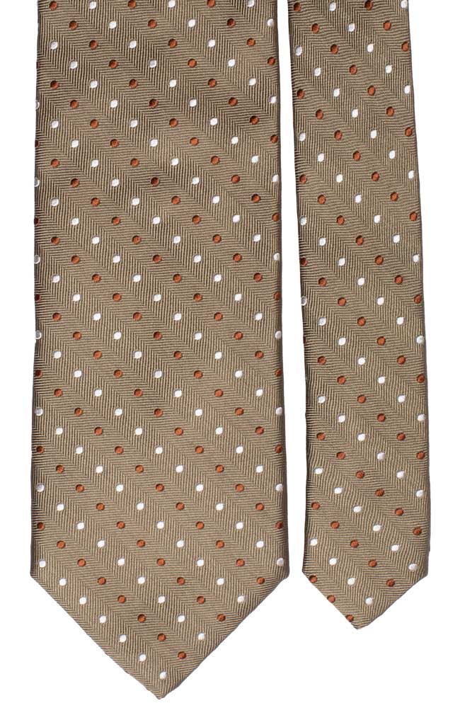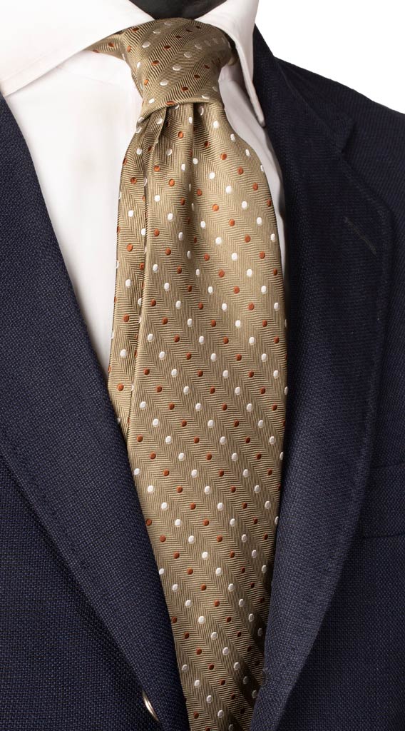 Man Olive Green Silk Tie Brown White Polka Dots 6578