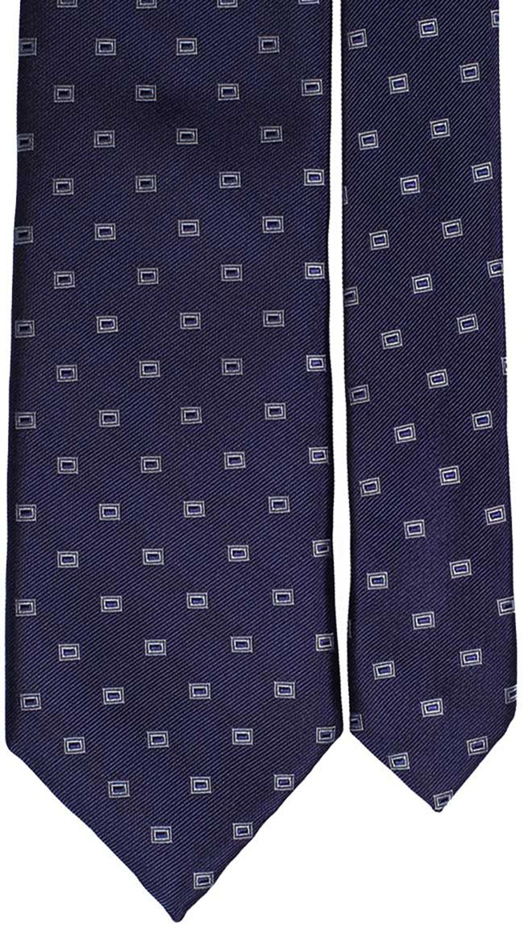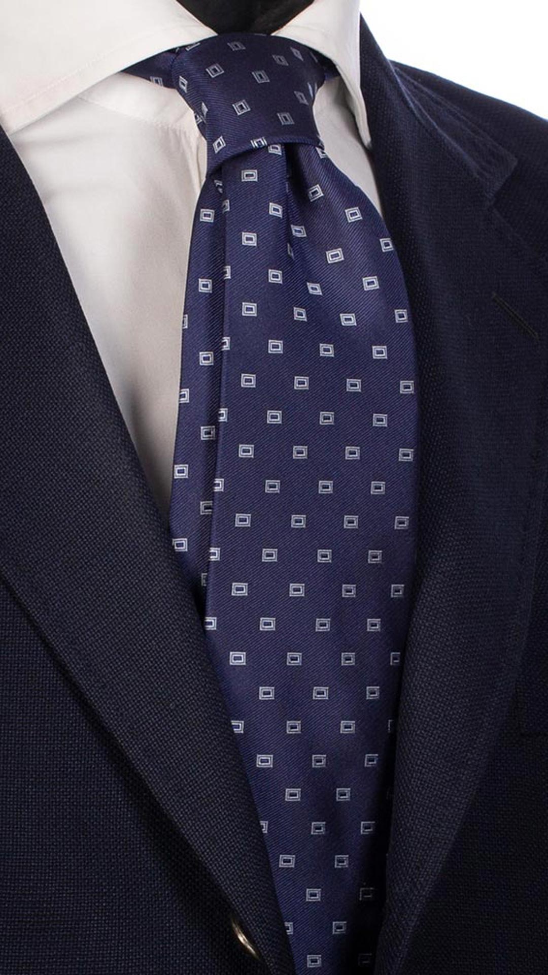 Man Blue Navy Ceremony Silk Tie White Pattern CY2684