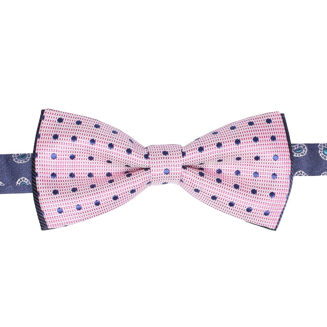 Man Pink White Silk Pre-Tied Bow Tie Blue Navy Polka Dots PAP284