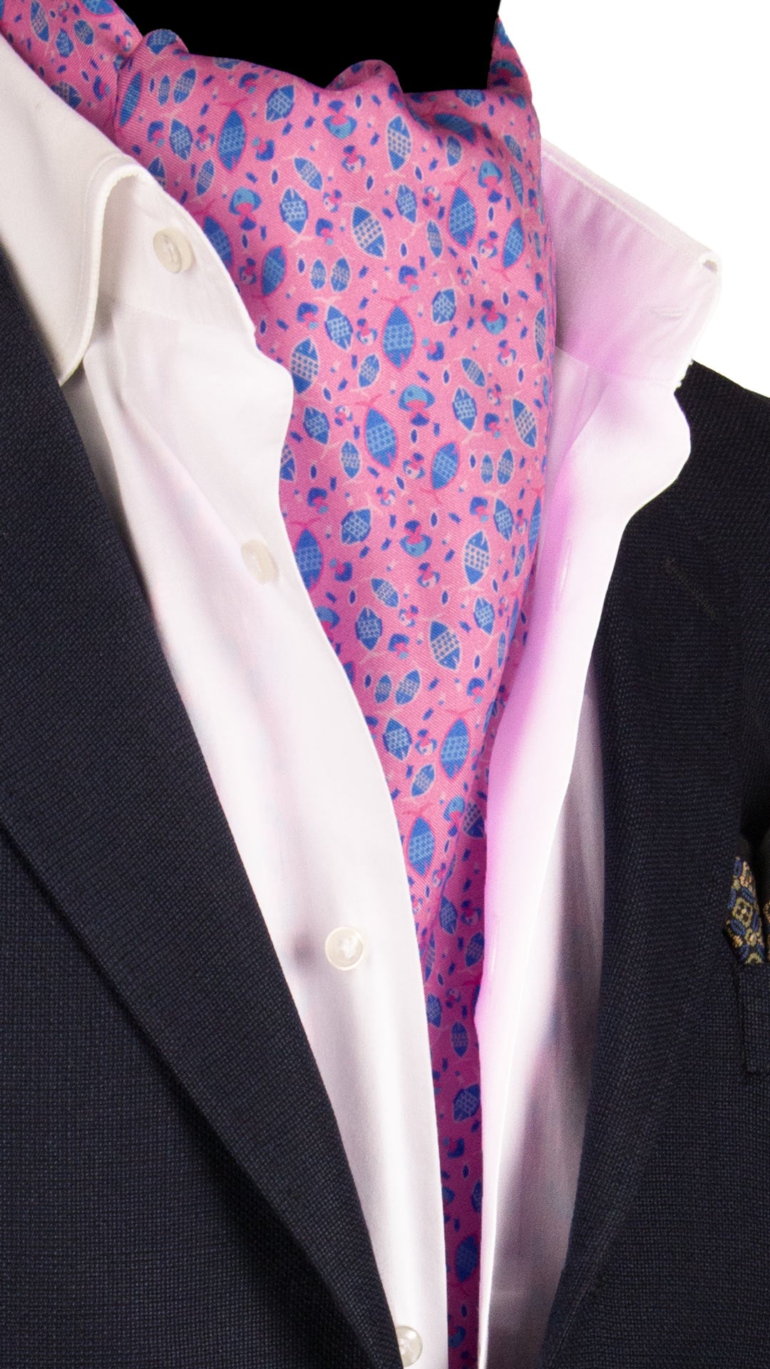 Man Pink Printed Silk Ascot Light Blue Azure Pattern with Animals AS141