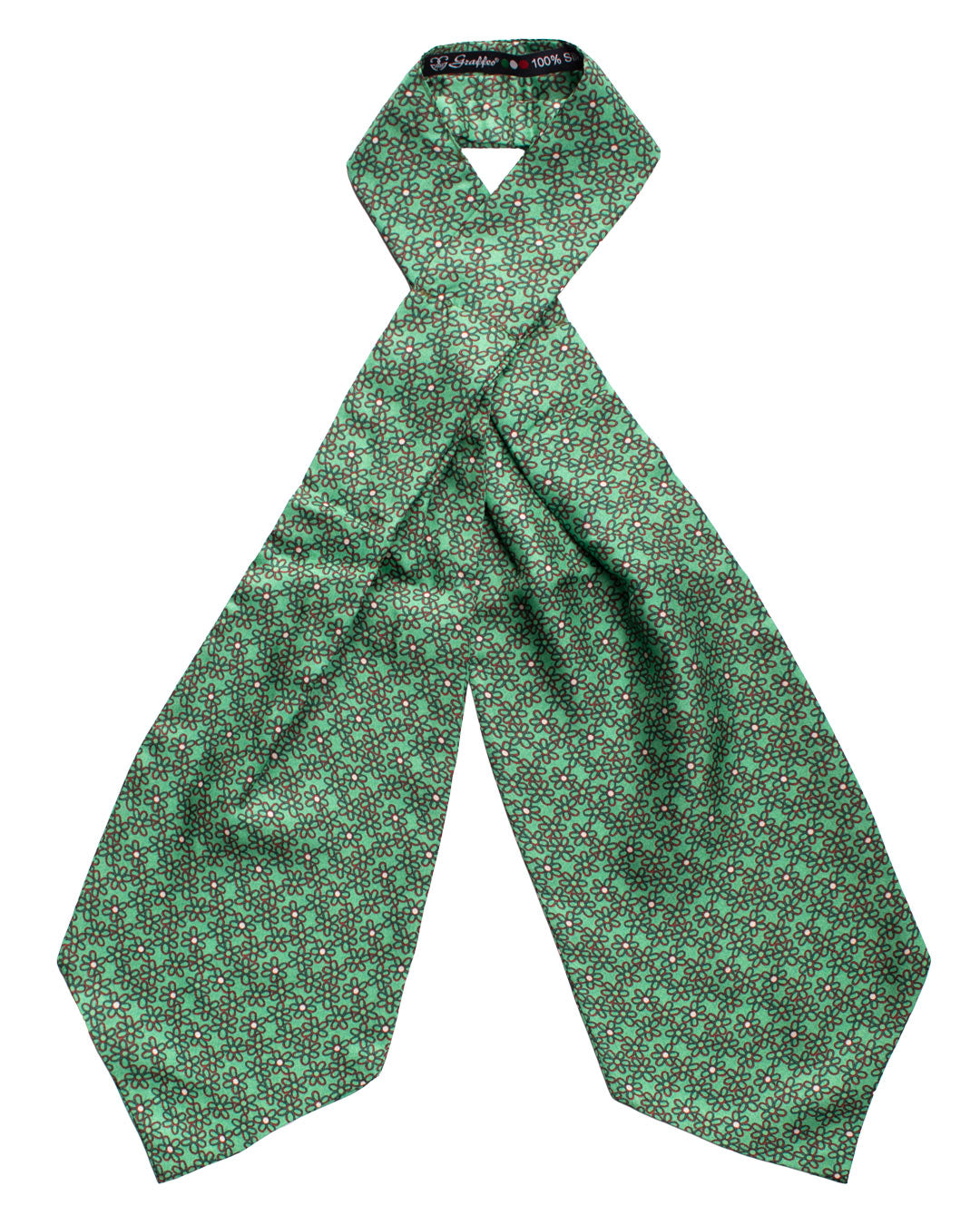 Man Green Printed Silk Ascot Red White Flowers AS186