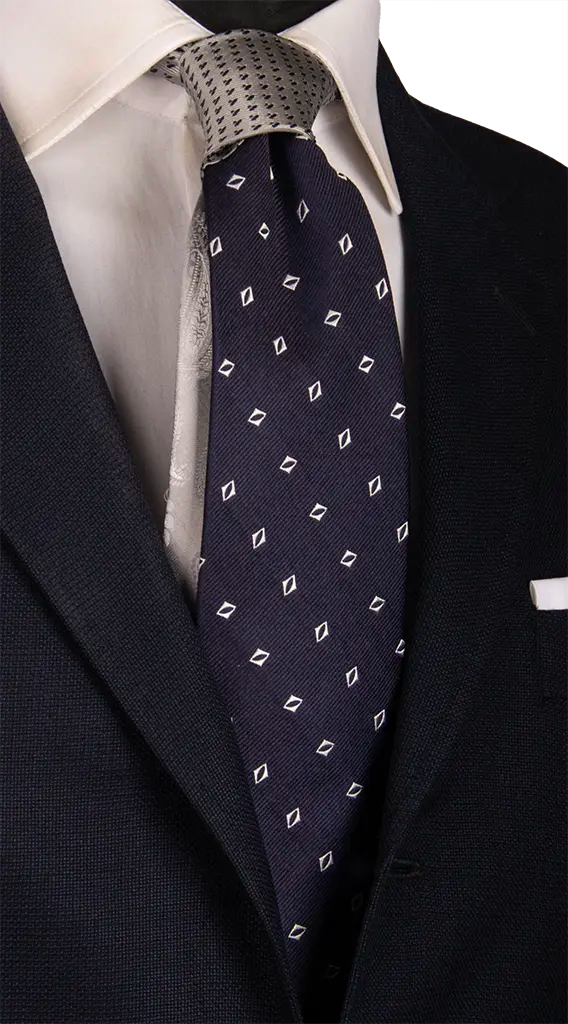 Man Blue Ceremony Silk Tie Silver Grey Pattern Silver Grey Contrast Knot Blue Pattern N3104