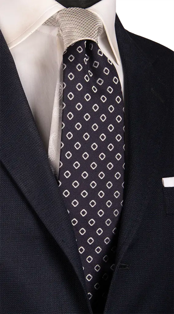 Man Blue Ceremony Silk Tie Silver Grey Pattern Silver Grey Contrast Knot N3093