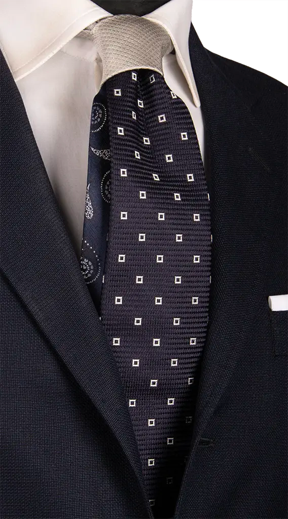 Man Blue Ceremony Silk Tie Silver Grey Pattern Silver Grey Contrast Knot N3046