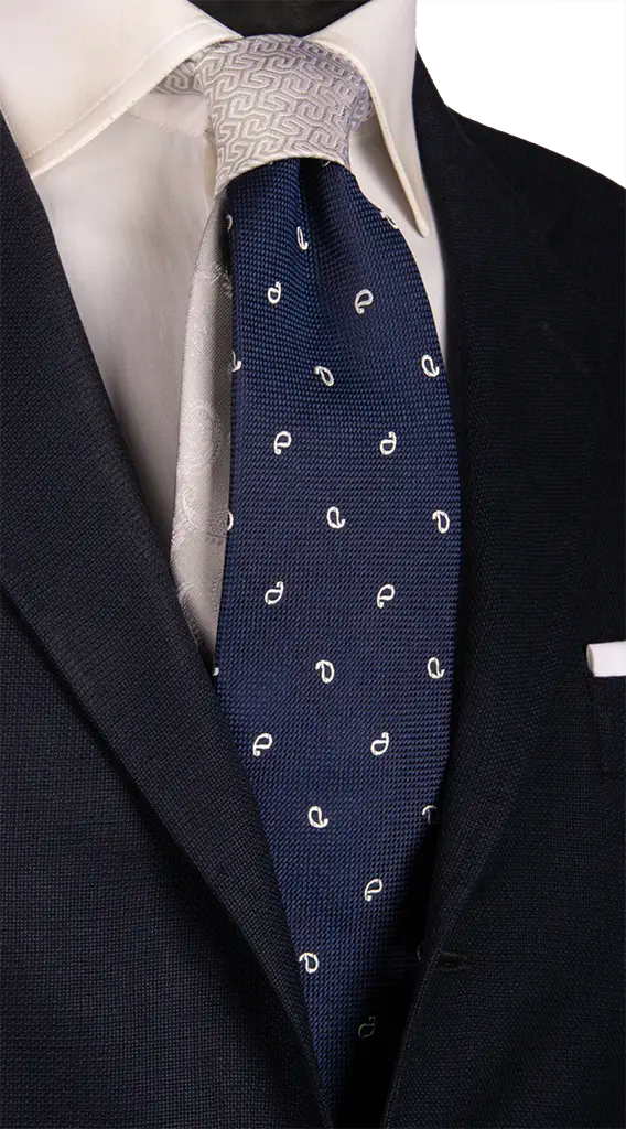 Man Blue Ceremony Silk Tie Silver Grey Paisley Silver Grey Contrast Knot N3044