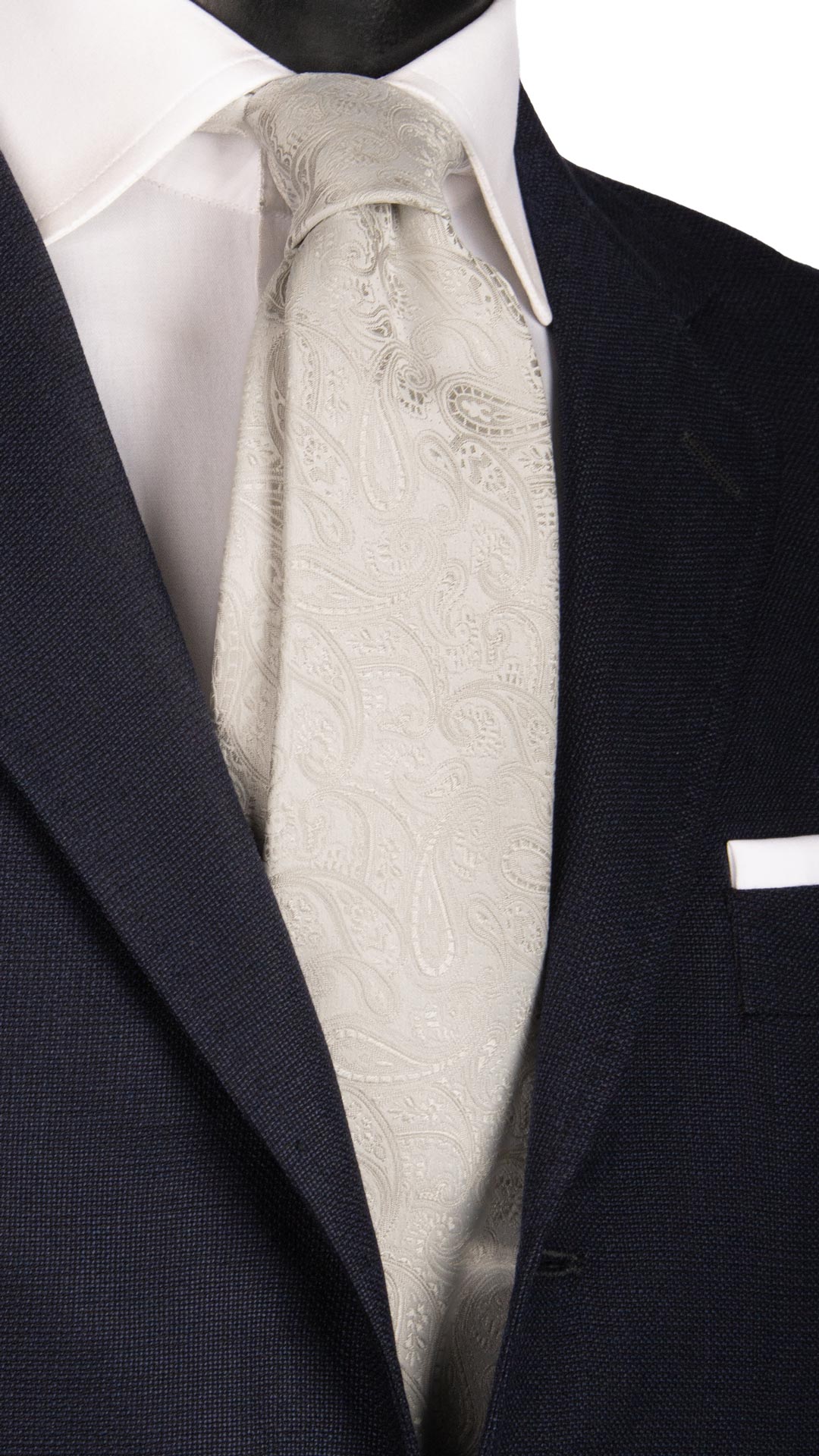Man Silver Grey Ceremony Silk Tie Tone on Tone Paisley CY6604